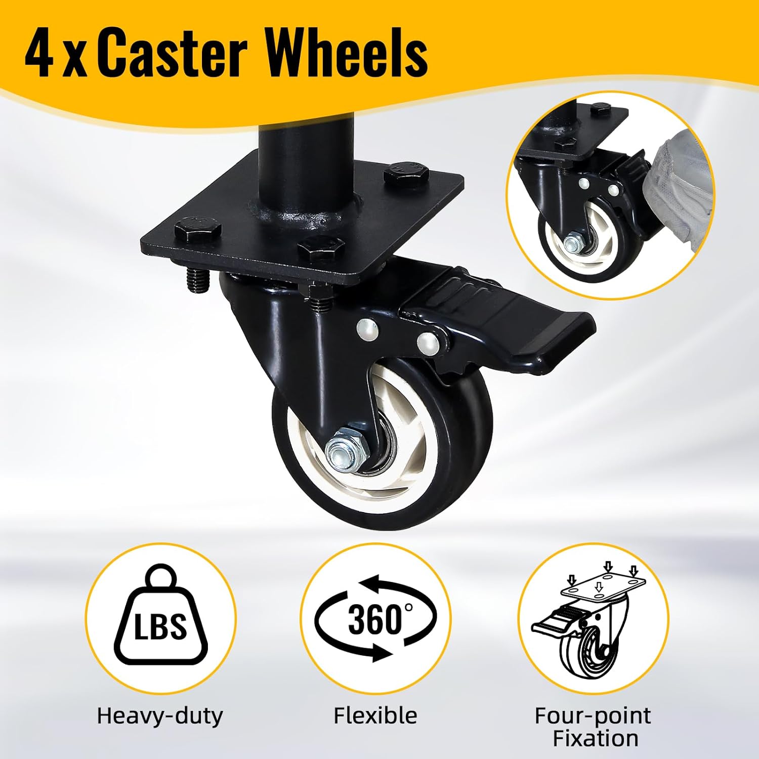 - [RELIABLE WEIGHT-BEARING CASTERS]: Our garage tire rack is equipped with a brake on each caster, allowing you to choose a fixed position or mobile storage, or safely lock the tire rack in any position during work.