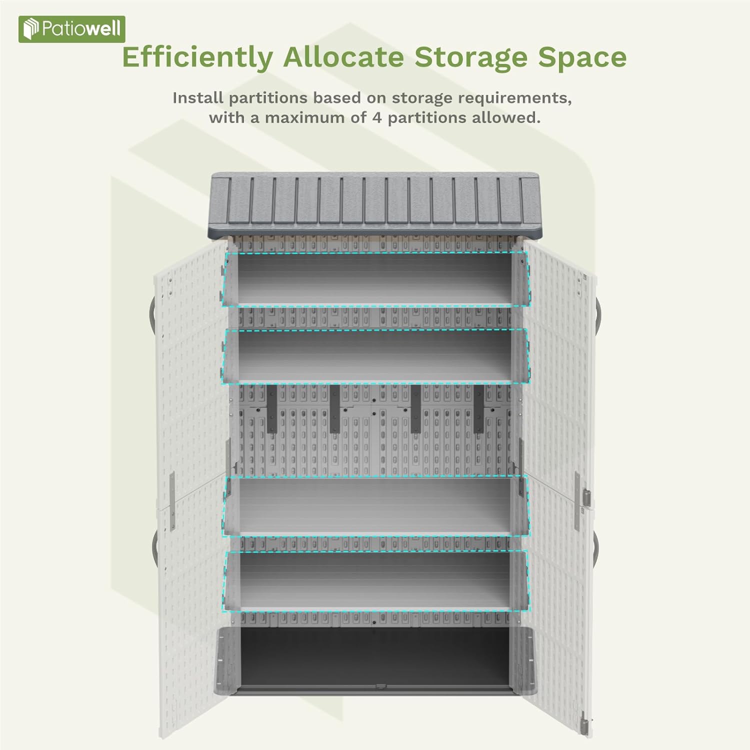 Patiowell 50 cu.ft Plastic Outdoor Storage Shed, Lockable Waterproof Resin Storage Cabinet Vertical Storage Shed for Garden Tools, Garbage Cans, Pool Supplies, White(Not Include Shelves)