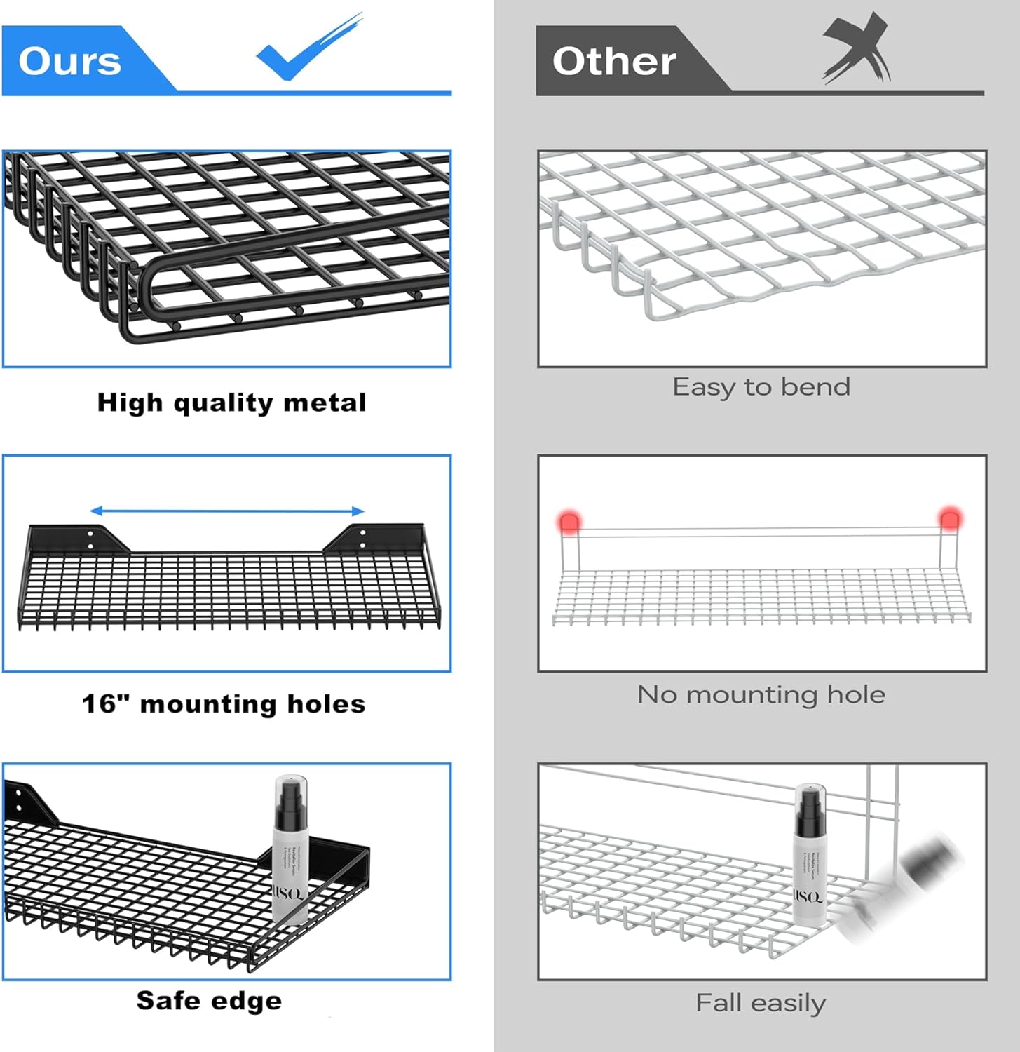 - Easy Install: Comes with all necessary screws and mounts directly to wall studs(16") for secure weight support. Install shelves one below another (vertically) or side by side (horizontally) to fit your space