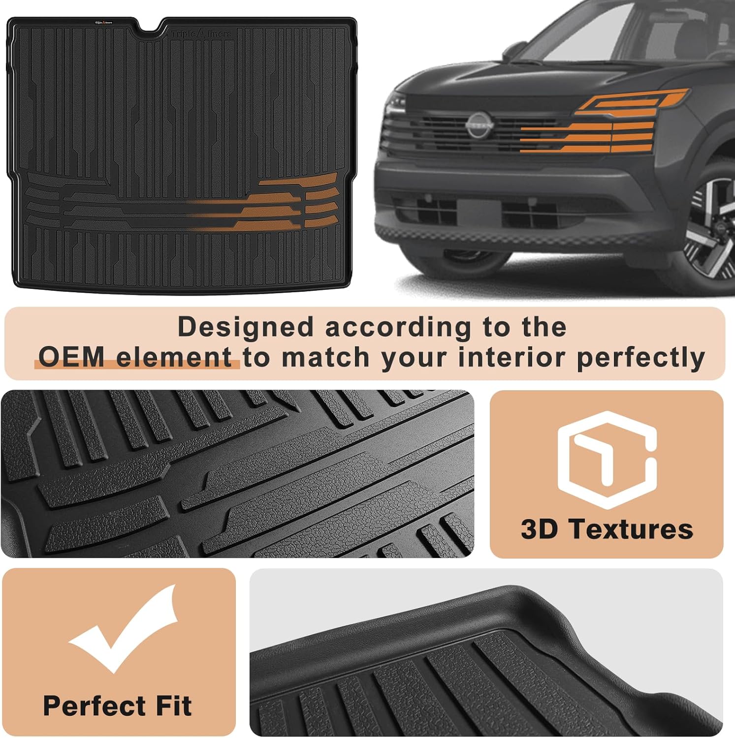 - Function & Why Us: Protect your trunk with full coverage, keeping a clean look and OEM style. 3D texture and anti-slip surface design ensure a flush fit and perfect stability. TripleAliner's mats feature reinforced edges for long-lasting performance