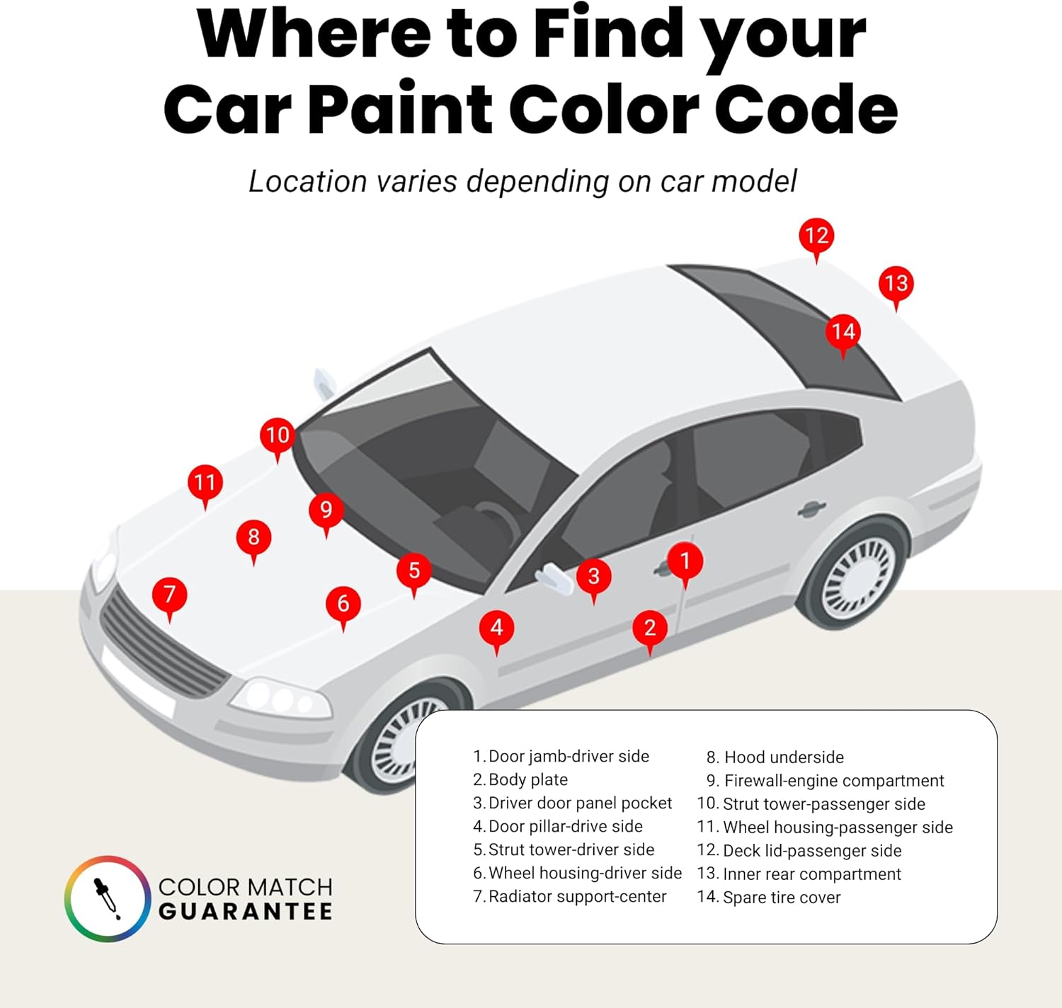 - TouchUpDirect's automotive paint is backed Color Match Guarantee for an exact match to your vehicle's color. Before starting your car paint repair, use our test card and familiarize yourself with our touch up paint applicators. We’re here to assist with any concerns or color variations.