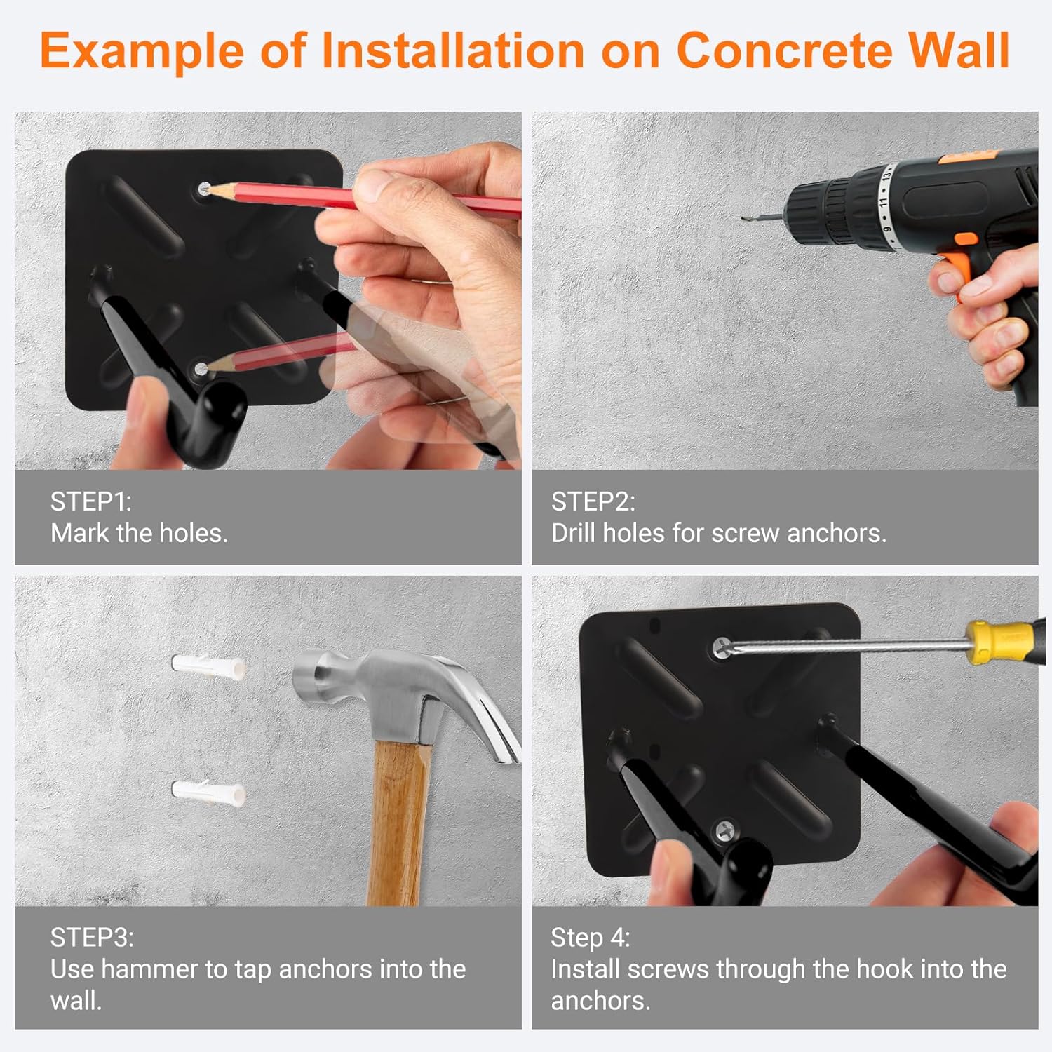 - Black Rubber Coating & Dual-Hook Design: Metal storage hooks with black rubber-coated design efficiently holding tools against scratches and rust, also dual-hook design keeps wall hooks with classic but elegant look.