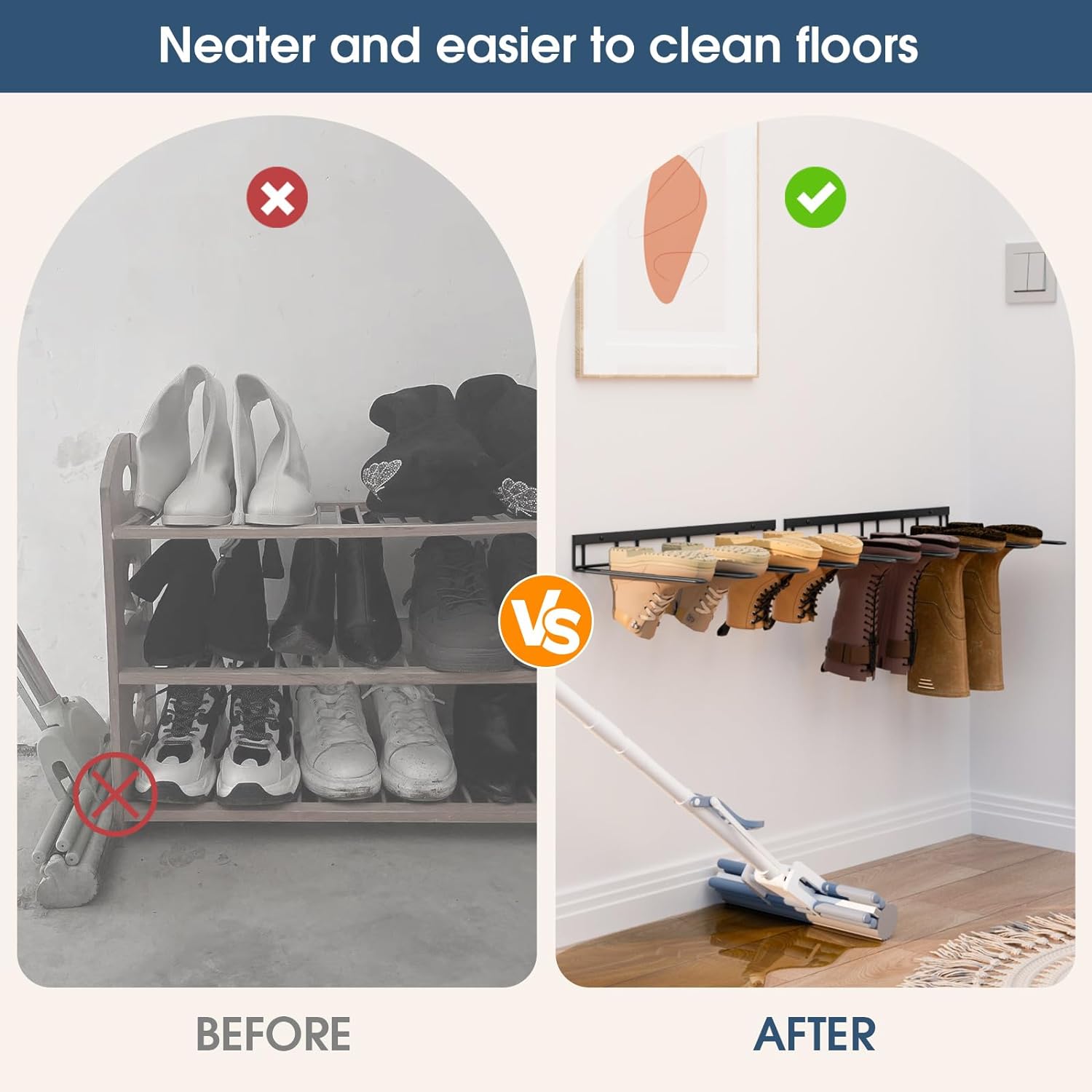 - Space-saving design: Our boot rack maximizes your storage space by utilizing wall space, No more wasting floor space to stacking cluttered boots