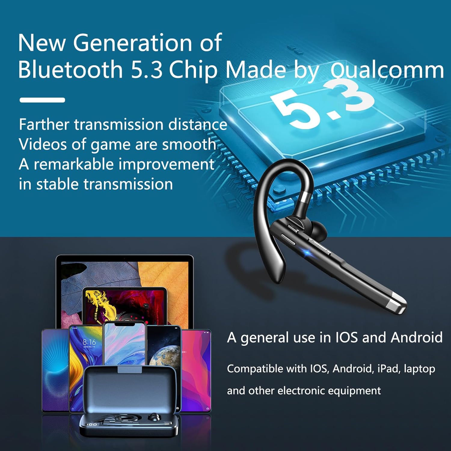 Bluetooth Headset, Bluetooth Wireless Earpiece with mic Trucker Headset for Phone Case Office Phones with Built-in Microphone Manos Libres Noise Cancelling(Black)
