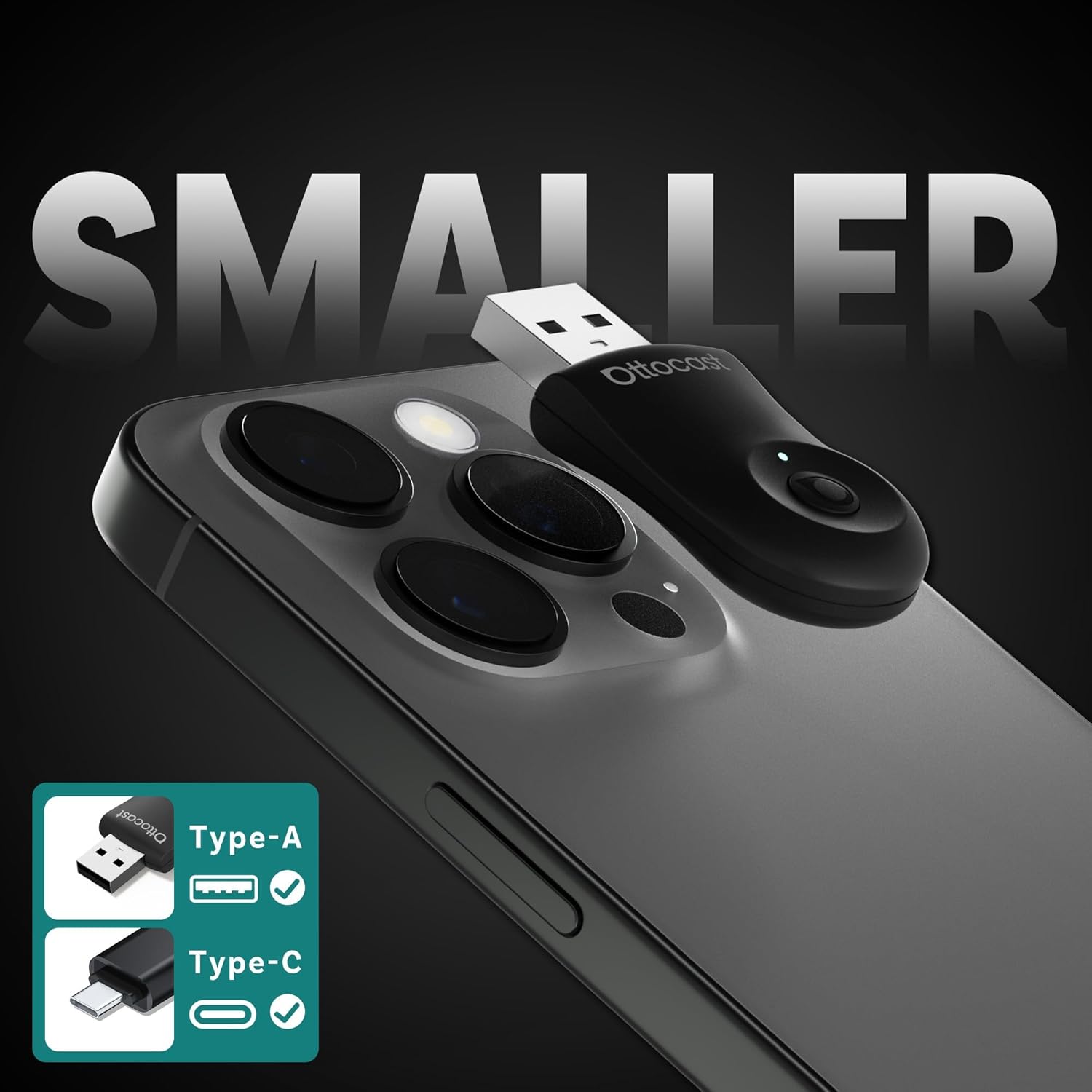 OTTOCAST Mini Dongle Wireless CarPlay Adapter for iPhone & Android Auto Adapter 2-in-1 Convert Wired to Wireless Apple Car Play, Plug & Play, USB-C, Low Latency (2016+ Cars, iOS 10+/Android 11+)