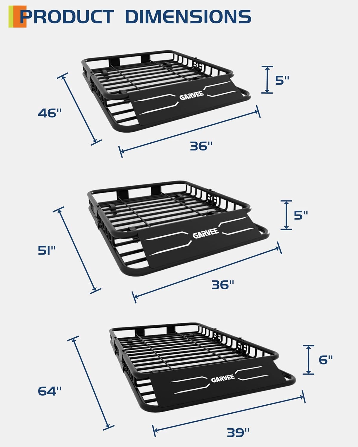 - 【BUILT TO LAST】The GarveeLife Universal Roof Rack Basket integrates powder-coated steel and electrophoretic technology to resist rust, corrosion, and extreme weather. Engineered for heavy-duty performance, it safeguards cargo during cross-country trips, camping, or long-term outdoor storage—built tough to outlast every adventure