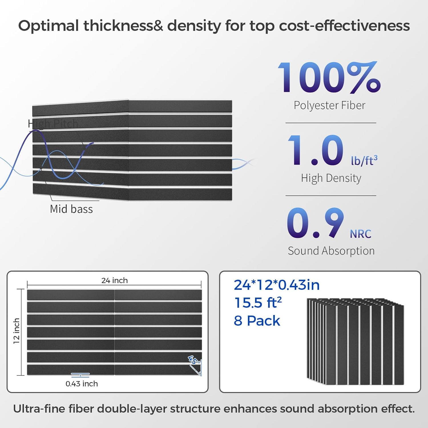 - High-Quality Material: These sound panels noise reducing for walls are made of high-quality 100% polyester, which is lightweight, durable, odorless and flame-retardant, safe to breathe and touch. There is no risk of spending a long time in a room with our soundproofing foam panels. 0.9lb/ft³ high density, effectively reduces noise and echo, enhances the sound quality of the space, suitable for various working environments.