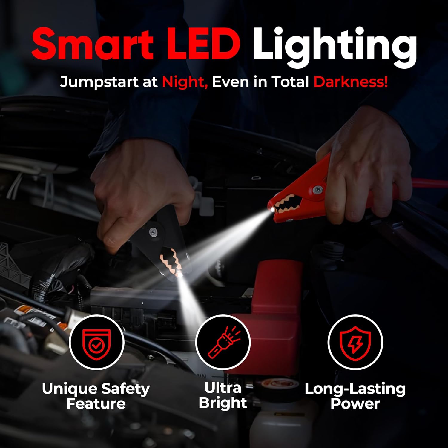 - LED-ILLUMINATED CONNECTION - Safe Start Illumi Jumper Cables for car & truck feature built-in LED indicators for a secure & correct connection every time, providing extra illumination for nighttime.