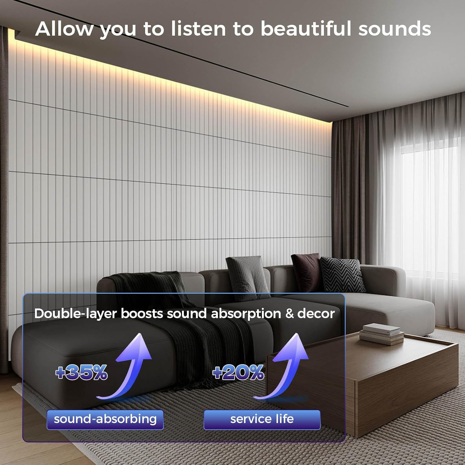 - 【Wide Range of Uses】: The elegant and generous lines of the decorative wall panels not only enhance the visual effect of the space, but we also provide a variety of color options, allowing you to create a unique space atmosphere through clever combinations, perfectly matching your various decoration styles. Noise cancelling wall panels is widely used in various scenarios such as musical instrument rooms, podcasts, recording studios, piano rooms, cinemas, living rooms, bedrooms, offices, etc