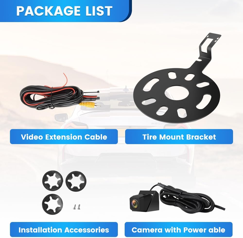 Backup Camera for Jeep Wrangler JK JKU Rubicon Sahara Sport Unlimited 2007-2018, Wide Angle Rear View Reverse Parking Off-Road Wheel Mount Camera