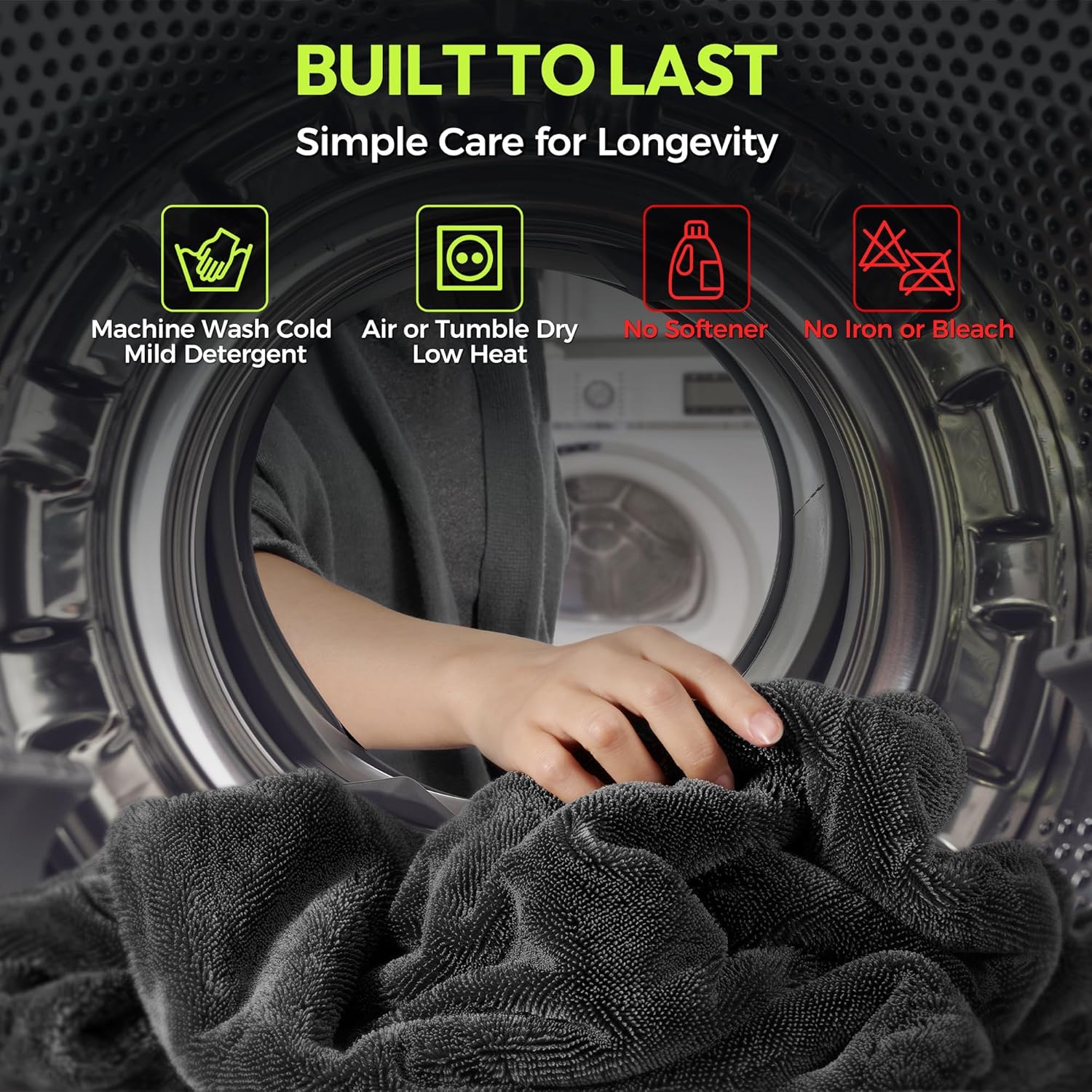- šāØšššæš®šÆš¹š² & šš¼š»š“-šš®ššš¶š»š“ - Built for Years of Use - Invest in quality that endures. Our reinforced construction ensures no shedding and maintains peak performance wash after wash. Simply machine wash cold and tumble dry low to restore its like-new absorbency. This durable towel is designed to be your trusted detailing companion for years to come, delivering consistent, professional results that make every car care session a success.