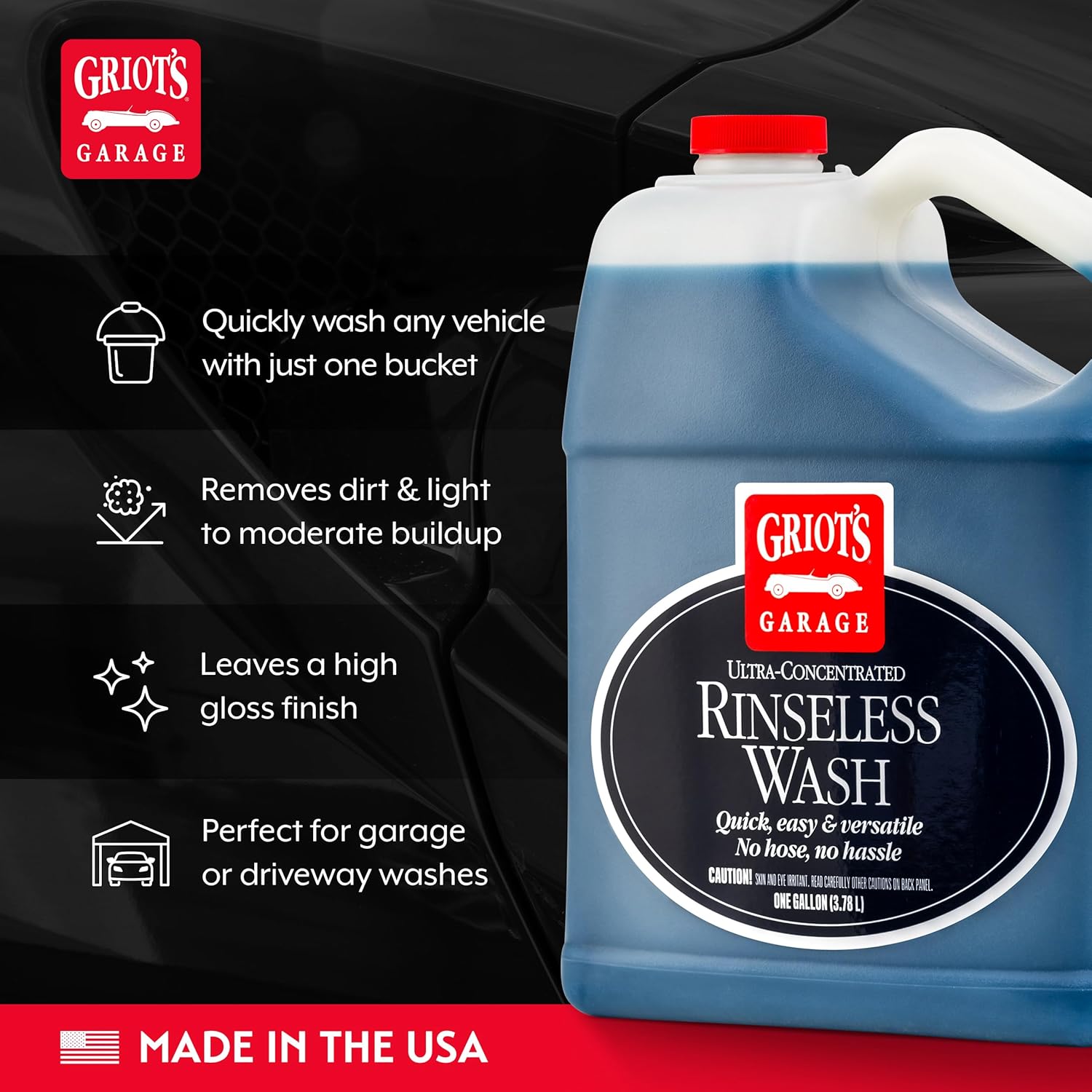 Griot's Garage Rinseless Wash for Car Cleaning and Detailing, No-Rinse Vehicle Washing, Dilutes Into Detailer, Clay Bar Lubricant, 10488, One Gallon