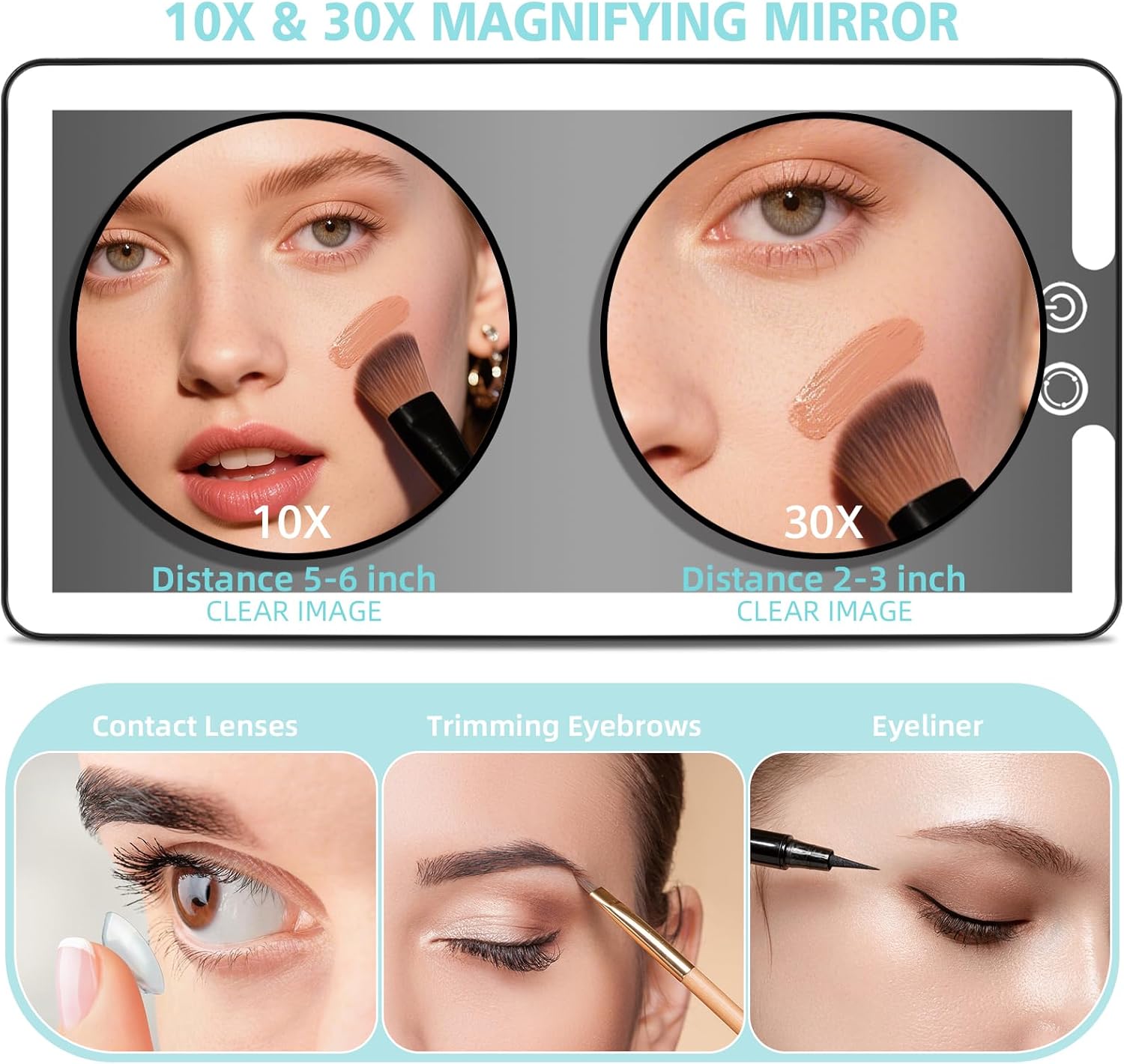 - 【Makeup Mirror With 10x and 30x magnification】 Our visor makeup mirror has a large mirror surface and a wide field of view, allowing you to view the overall effect of your makeup after applying it; not only that, we also equipped it with 10X and 30x magnifying mirror, whether you are touching up your makeup, retouching your eyebrows or retouching your eyeliner. The ultra-clear reflection ensures that every detail is clear and realistic, making it an indispensable tool for makeup enthusiasts and professionals.
