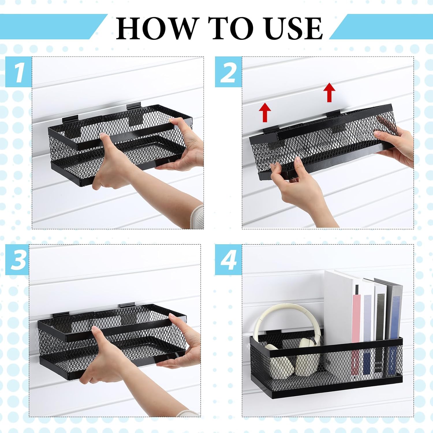 - Easy Installation and Usage: a noteworthy feature of these metal wall baskets is their suitability with most slatted walls, making them an ease to install by merely inserting them into the slot at an angle; This provides them with a stable positioning, which is not easy to dislodge, thus aiding in maintaining a clean environment; Maximize your use of wall space and keep your surroundings tidier