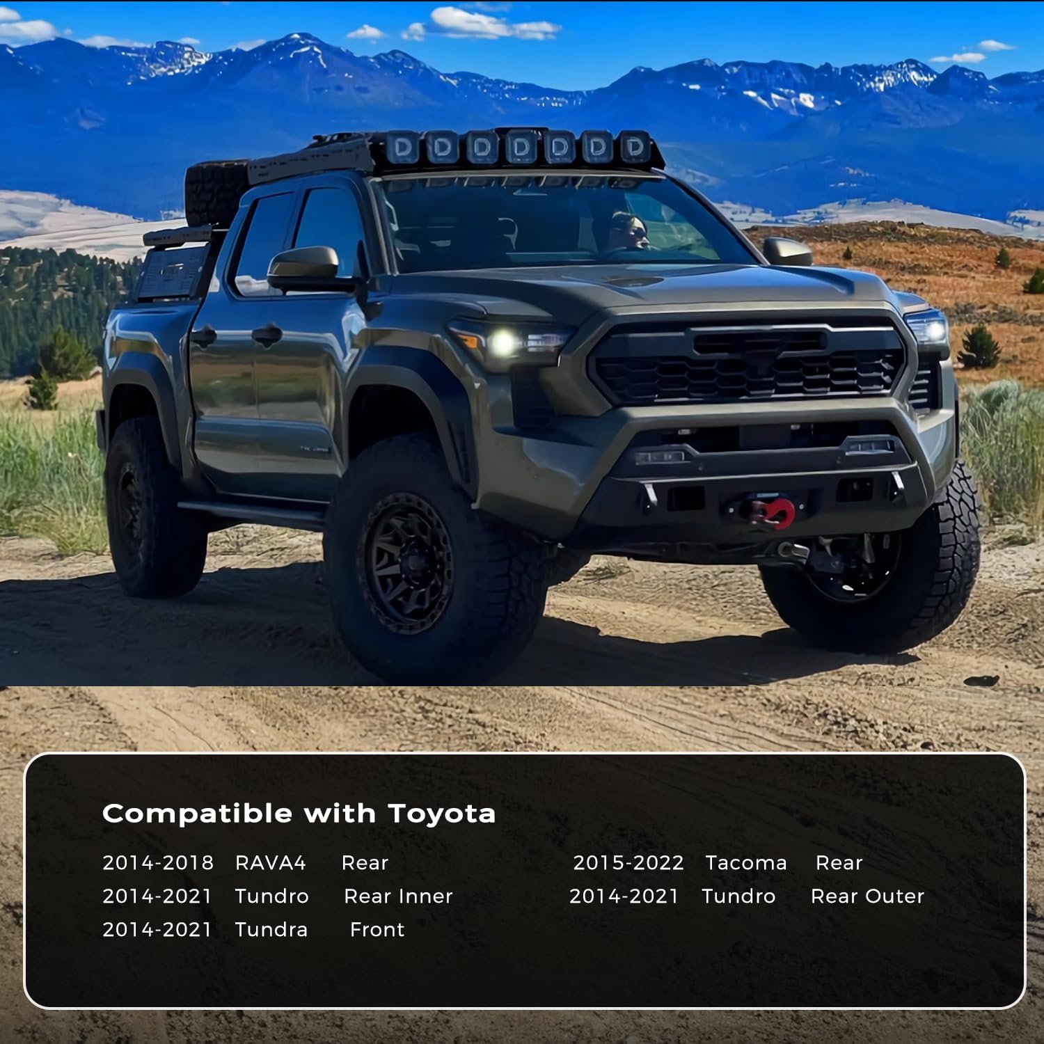 - 【Vehicle Fitment】Compatible with Toyota RAV4 2014-2018(Rear; Built In US), Tacoma 2015-2022(Rear), Tundra 2014-2021(Rear Outer/Rear Inner/Front; without Rubber Spacer) Reverse Backup Parking Sensors.