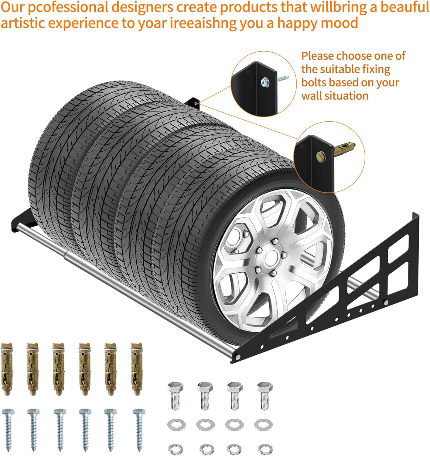 - 【Tire Storage Rack】: Our utility racks have textured powder-coated frame brackets, The heavy duty wheel rack holds up to 400 pounds, easily storing 4 standard size tires. Our professional designers create products excellent wall storage solution will bring a beautiful artistic experience to your life