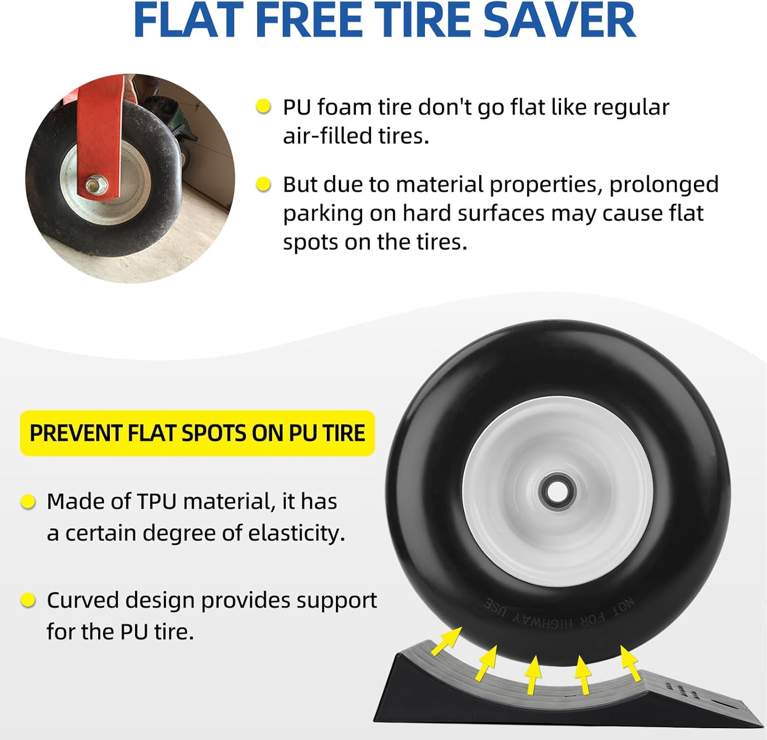 2-Pack Flat Free Tire Saver Ramp for 13-17" PU Foam Tire and Wheel, Non-Flat Spots Tire Saver Ramp, Suitable for Lawnmower, Wheelbarrow, and Trailer
