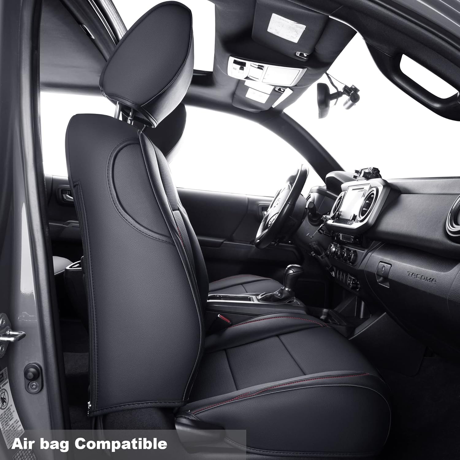 LUCKYMAN CLUB Tacoma Custom Fit Seat Covers for 2024 2025 Tacoma Crew Cab with Faux Leather (Black & Red)
