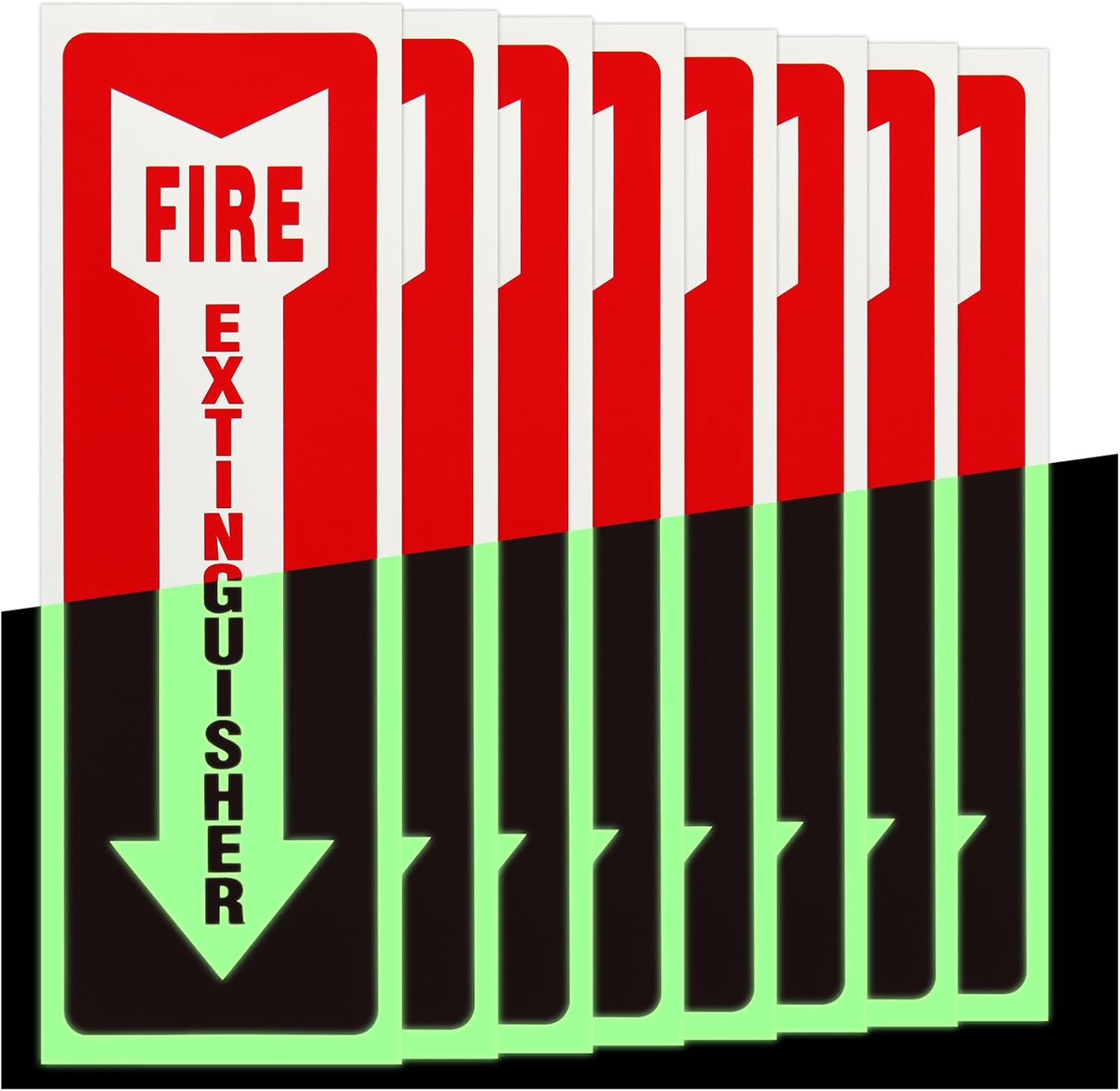 Madrigal Fire Extinguisher Glow in the Dark Sticker Sign,fire extinguisher sign,8Pack-4x12"Premium Self-Adhesive Vinyl for UV, Weather, Scratch, Water and Fade Resistance, Indoor and Outdoor