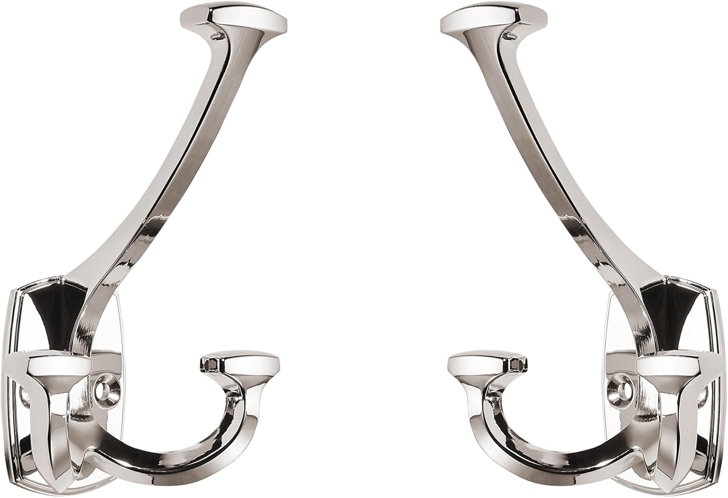 Large Wall Double-Sided Hook 5 Pack Polished Nickel Hook Decorative Heavy Duty Solid Large Coat Hooks for Towel Hanging Coats Robe Towel Bags Door Back 2 Prong Hooks