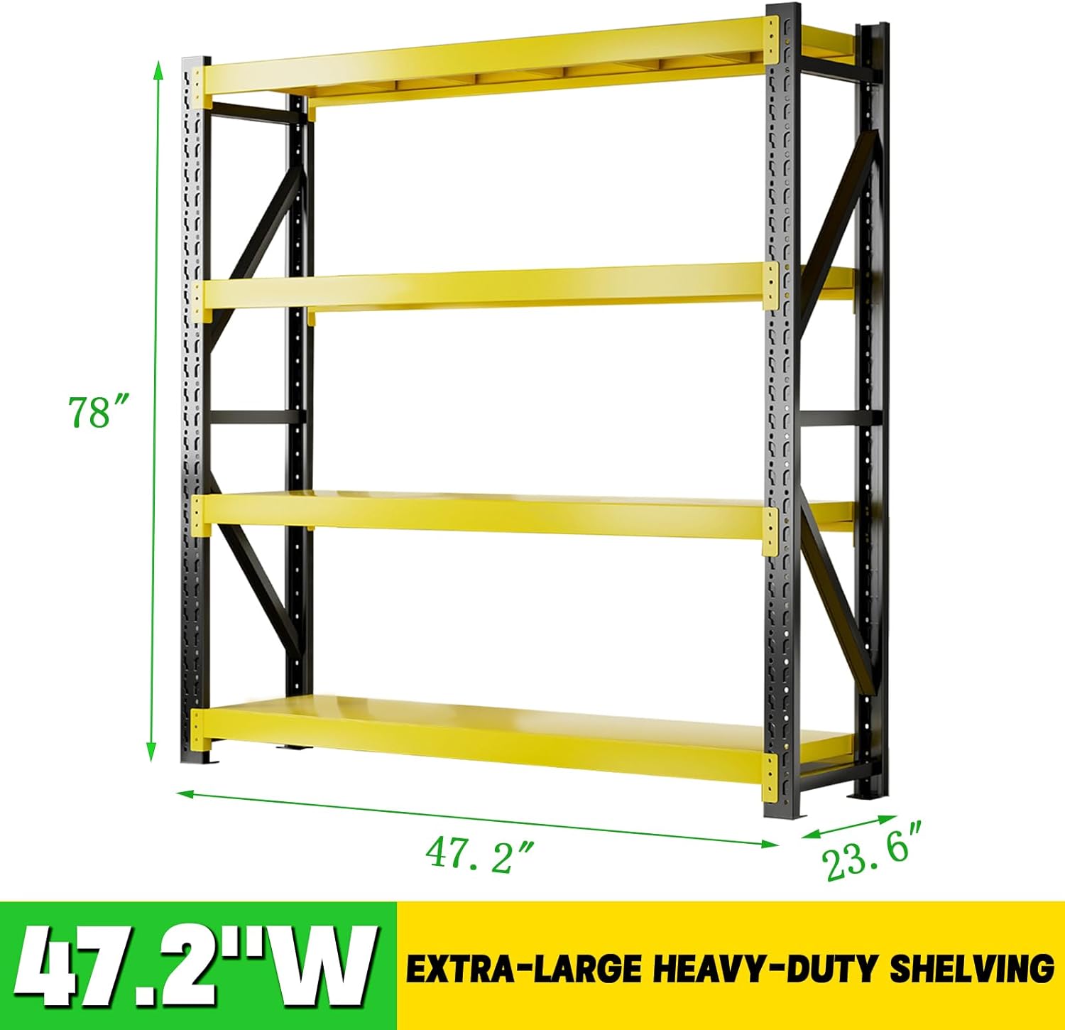 3000LBS Heavy Duty Storage Shelves,78''H Metal Garage Shelving, 4-Tier Adjustable Garage Organization Shelving Units, Industrial Shelving for Warehouse,Workshop- Black & Yellow