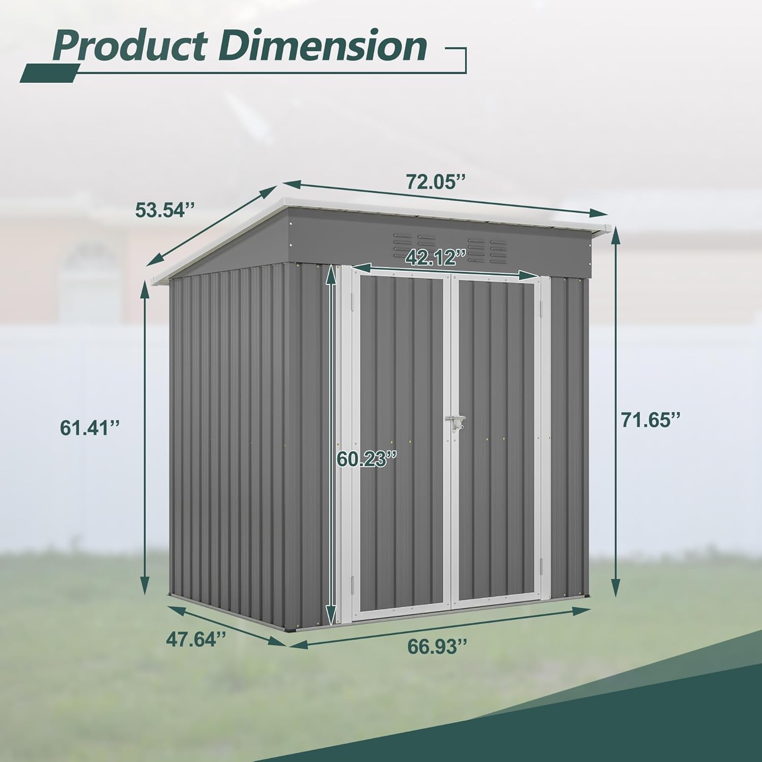 - 【Multi-Purpose Storage Solution】 This 6x4 FT metal shed is perfect for storing gardening tools, lawn equipment, or seasonal items. It also works as a pet shelter or garbage storage room to keep your yard neat and organized.