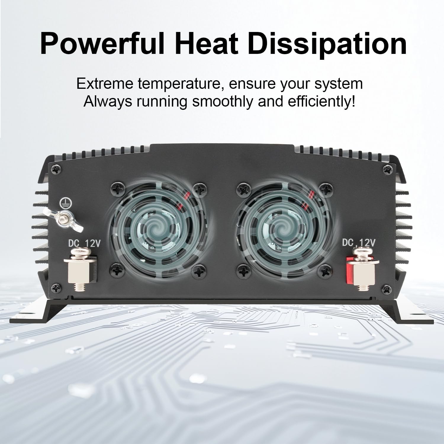 - {Cooling Fan} The car inverter uses an intelligent fan system to dissipate heat during the entire operation. When the internal temperature of the machine reaches a certain level, the fan rotates to effectively reduce the temperature.