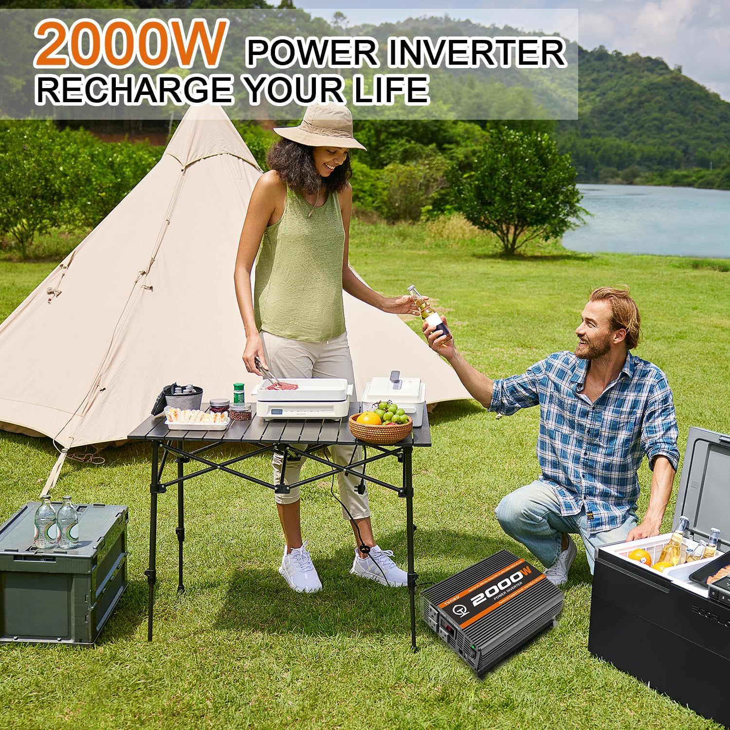 - {Safety protection} This 2000 watt inverter has Multiple protections: overvoltage, undervoltage, overload, short circuit, overheating and soft start technology. Equipped with dual cooling fans, excellent heat dissipation performance. Ensure your safety during use and extend the service life of the inverter.