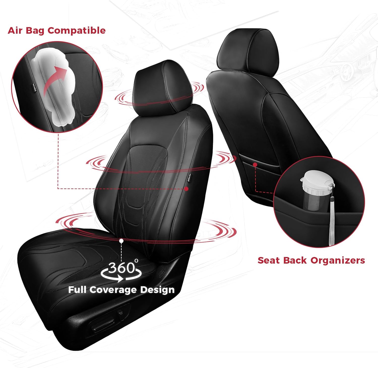 - 【All-Day Comfort for Drive】: Breathable, ultra-soft and skin-friendly leather with high-elastic sponge padded automotive seat covers full set to make your journey more comfortable.