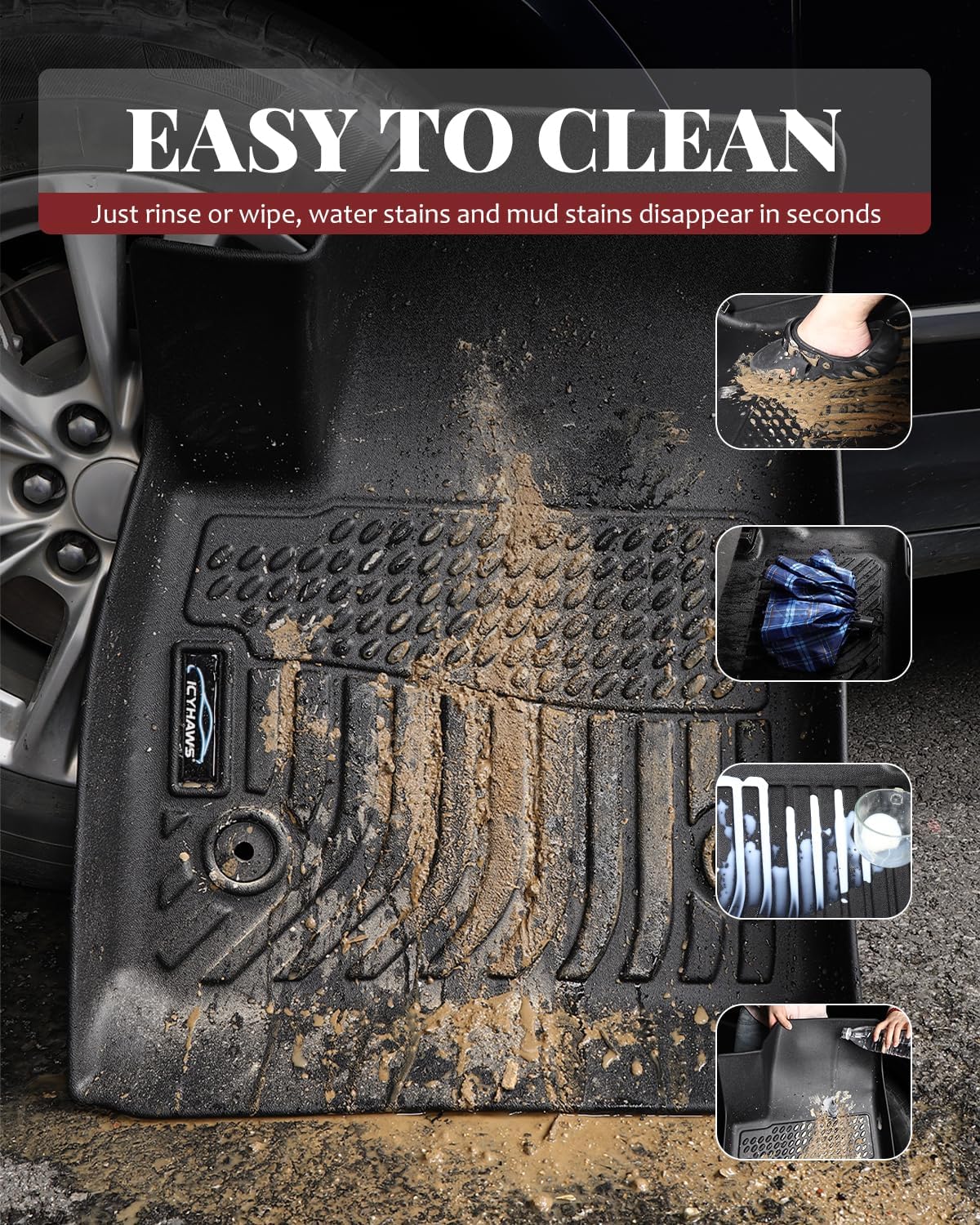 - ALL-WEATHER PROTECTION | Featuring raised edges, these mats effectively trap dirt, mud, and spills, safeguarding your vehicle’s interior from stains and damage in any season.