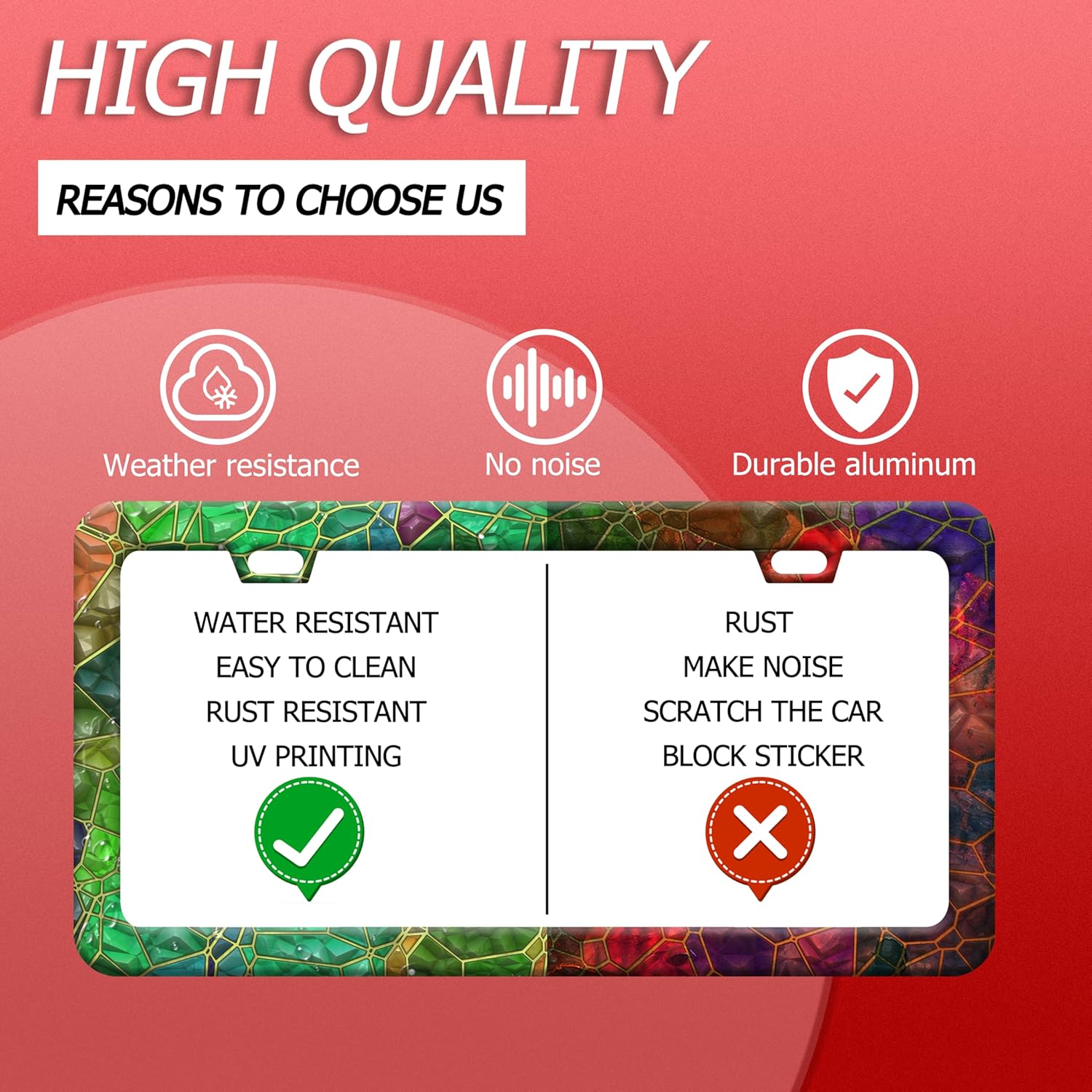 Colored Gemstone Patterns License Plate Frame Funny License Plate Frames Stainless Steel Accessories Cars Decor with 2 Holes and Screws Fits Standard Us Ca Vehicles License Plate Holder 12.2 X 6 Inch