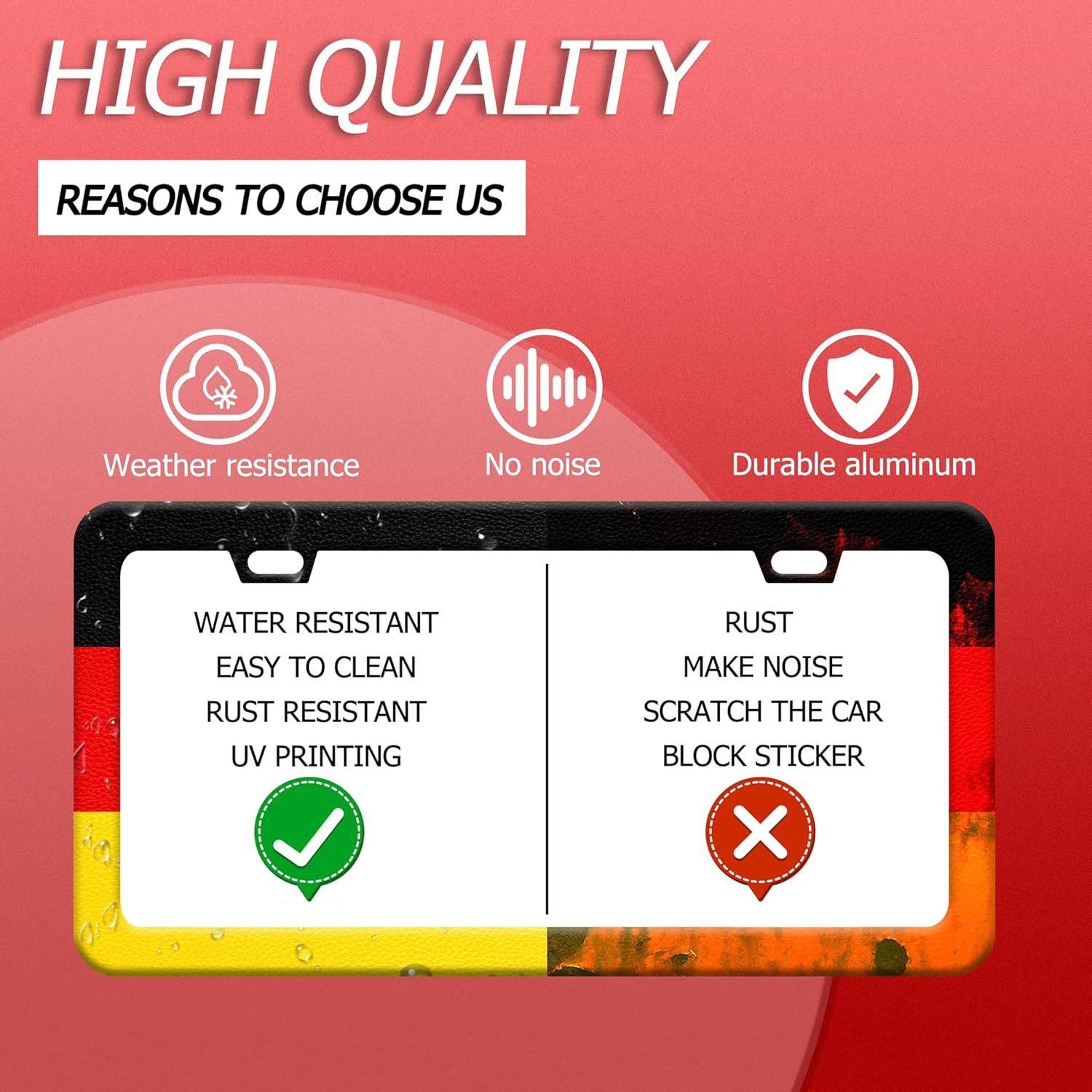 German Flag License Plate Frame Funny Germany License Plate Frames Stainless Steel Accessories Cars Decor with 2 Holes and Screws Fits Standard Us Ca Vehicles License Plate Holder 12.2 X 6 Inch