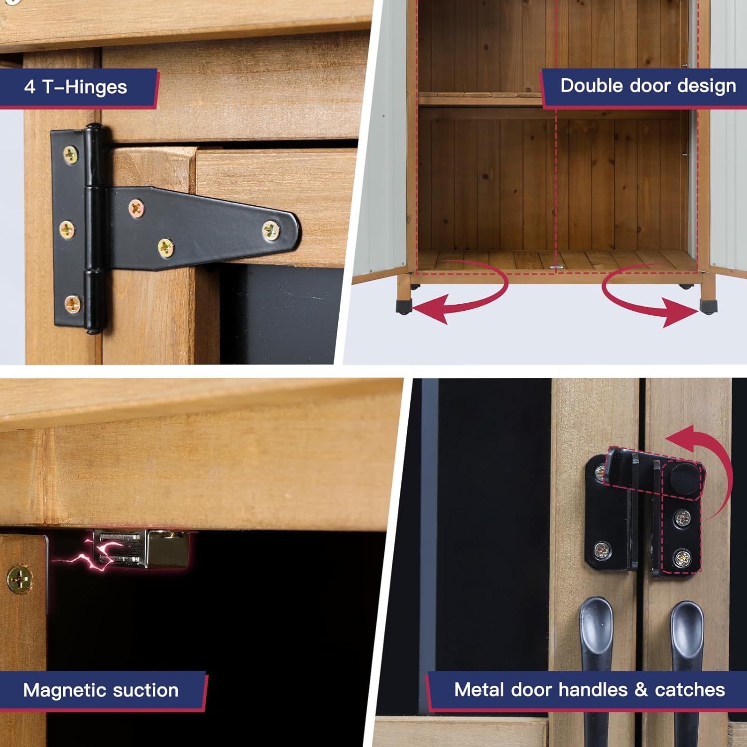- Secure & Functional Hardware: Includes robust metal handles, metal latches, and 4 reinforced T-shaped hinges for added strength and long-lasting use