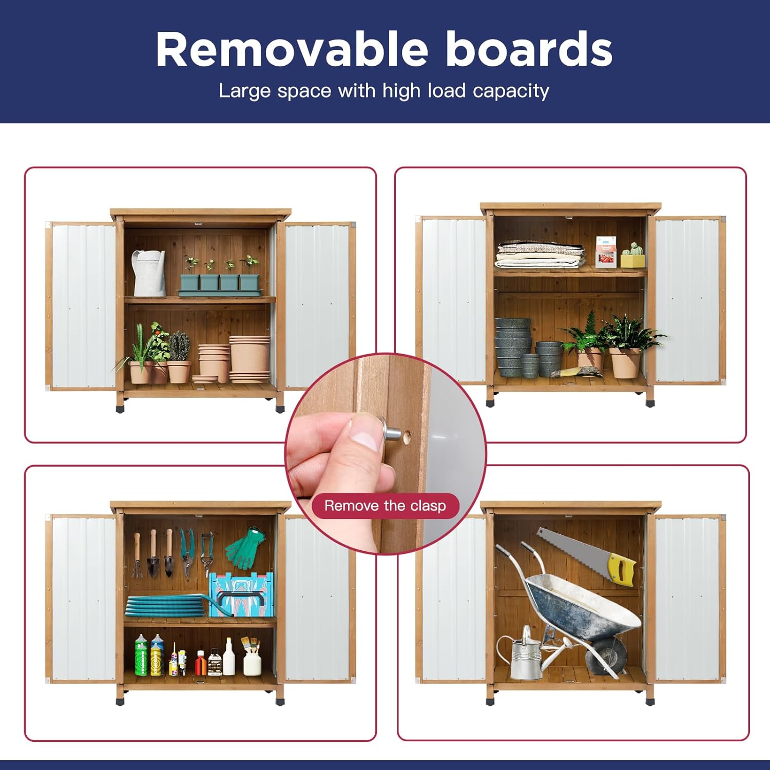 - Spacious & Adjustable Interior: Features 2 removable shelves, allowing you to customize the storage space for garden tools, large items, or other outdoor essentials