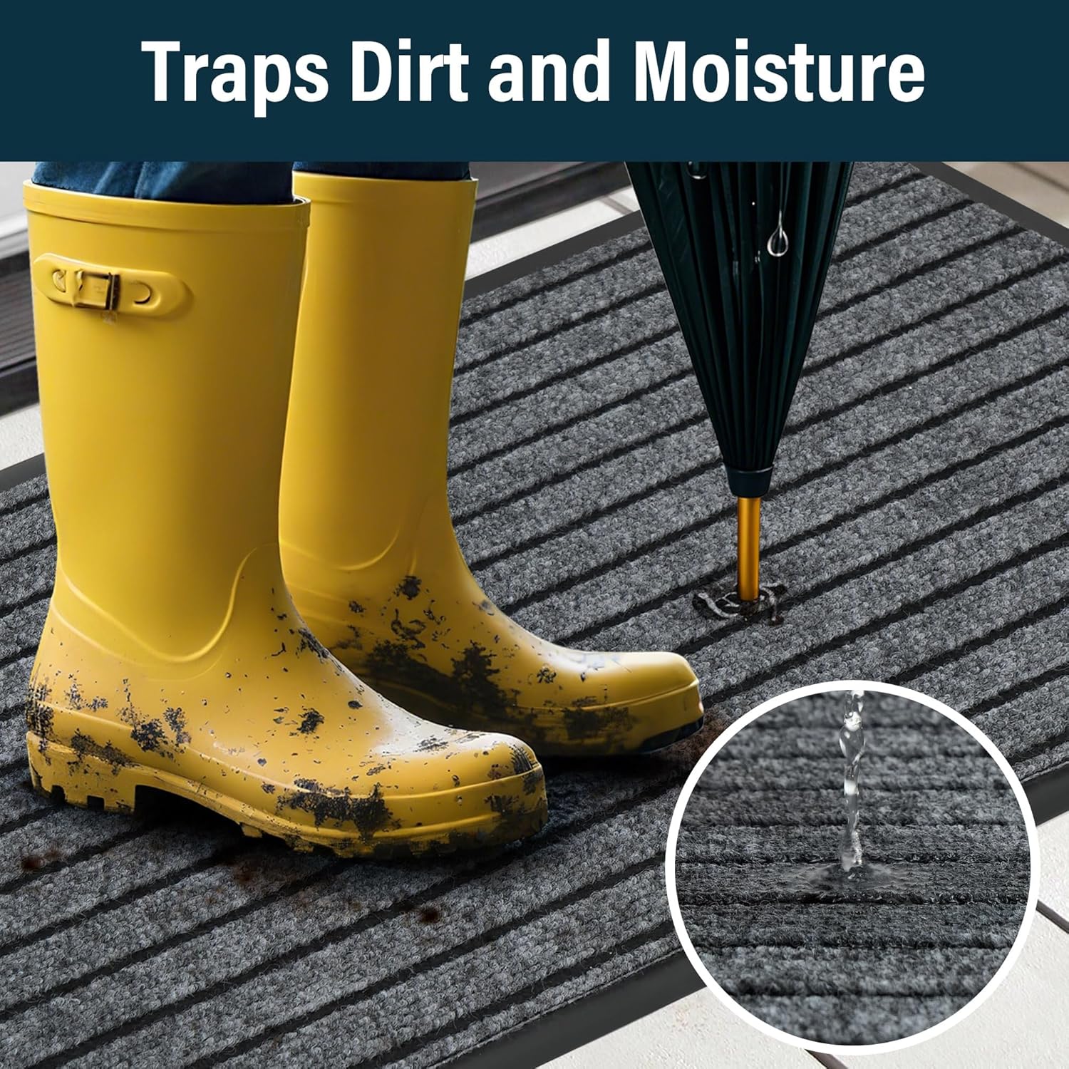 - Durable & Absorbent Design: Made from 100% high-density polyester and pvc, this doormat effectively traps moisture, dirt, and debris, keeping your floors clean even in wet or snowy weather