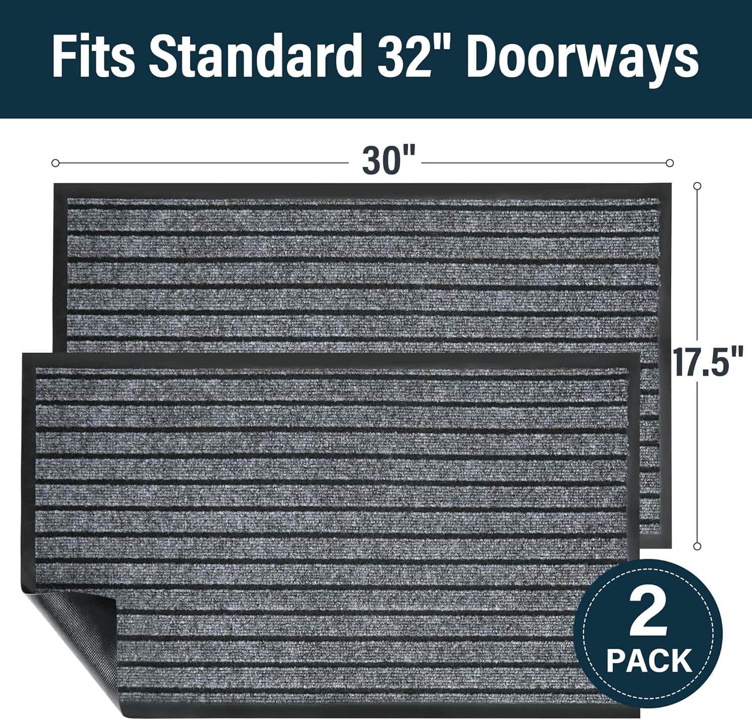 LotFancy 30" x 17" Set of 2 Front Door Mat for Indoor Outdoor Entrance, Dirt Traper Low Profile Easy Clean Doormat, Non Slip Welcome Mats for Patio Porch Garage Entryway, Dark Gray