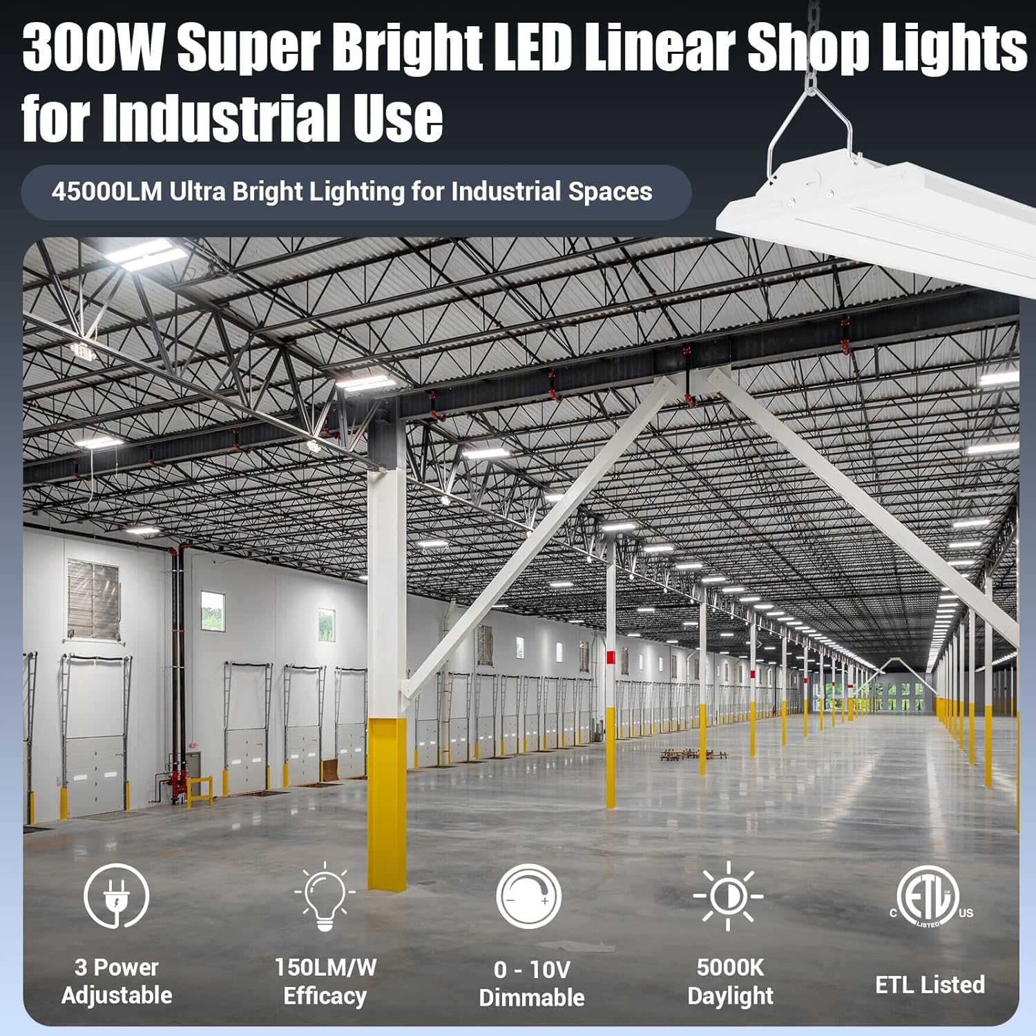 LED Linear Shop Lights 300W, 45000LM Led High Bay Lights 5000K Daylight 120-277V,Led Garage Light for Shop Workshop Store Commercial Supermarket Warehouse Basement Exhibition Room ETL-1Pack