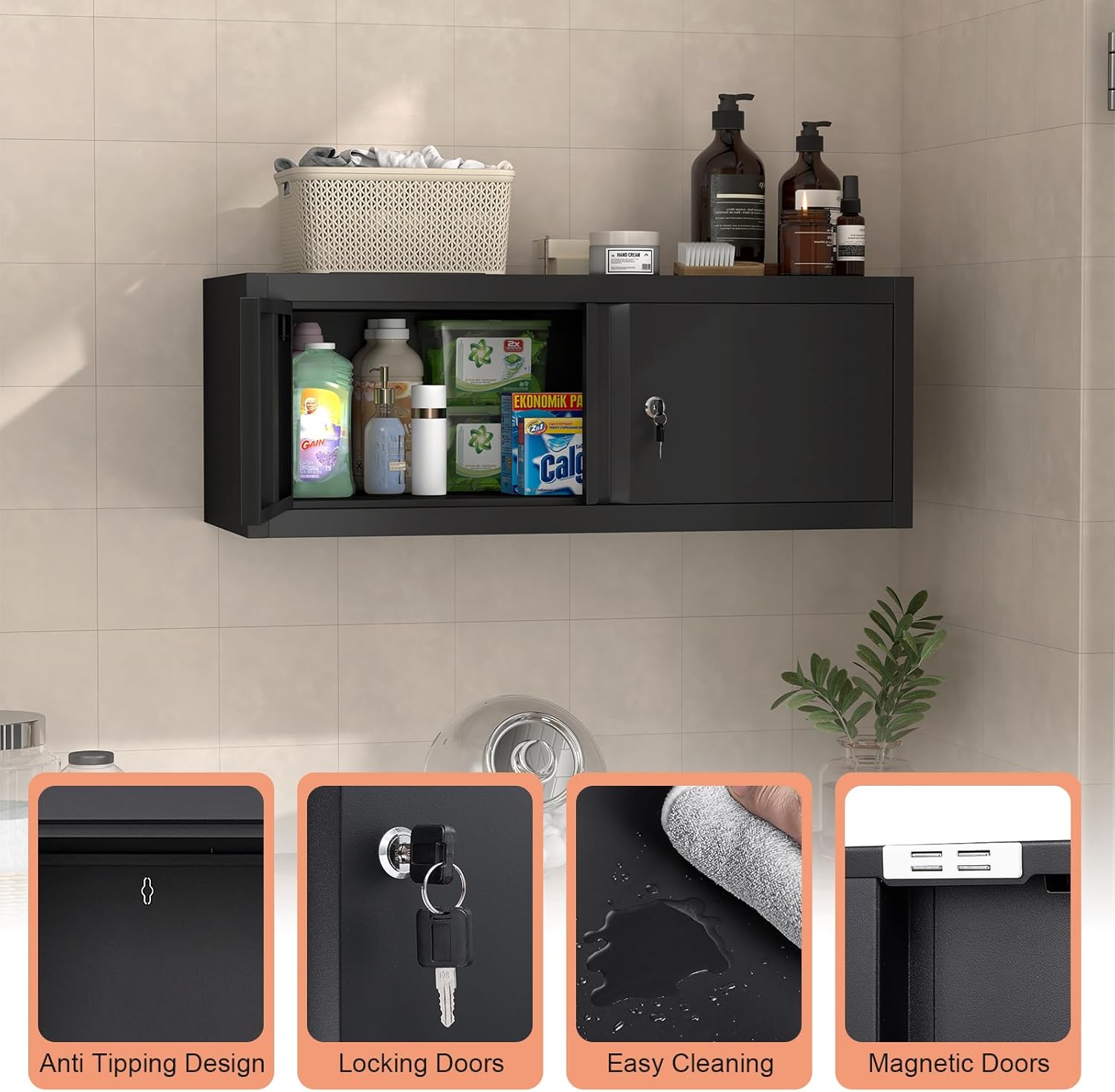 - 【Secure Locking System】The metal wall cabinet with Lock can keep your tools and hazardous materials safe with the integrated lockable design.This garage cabinet ensures added security, protecting your belongings from unauthorized access while keeping children and pets safe