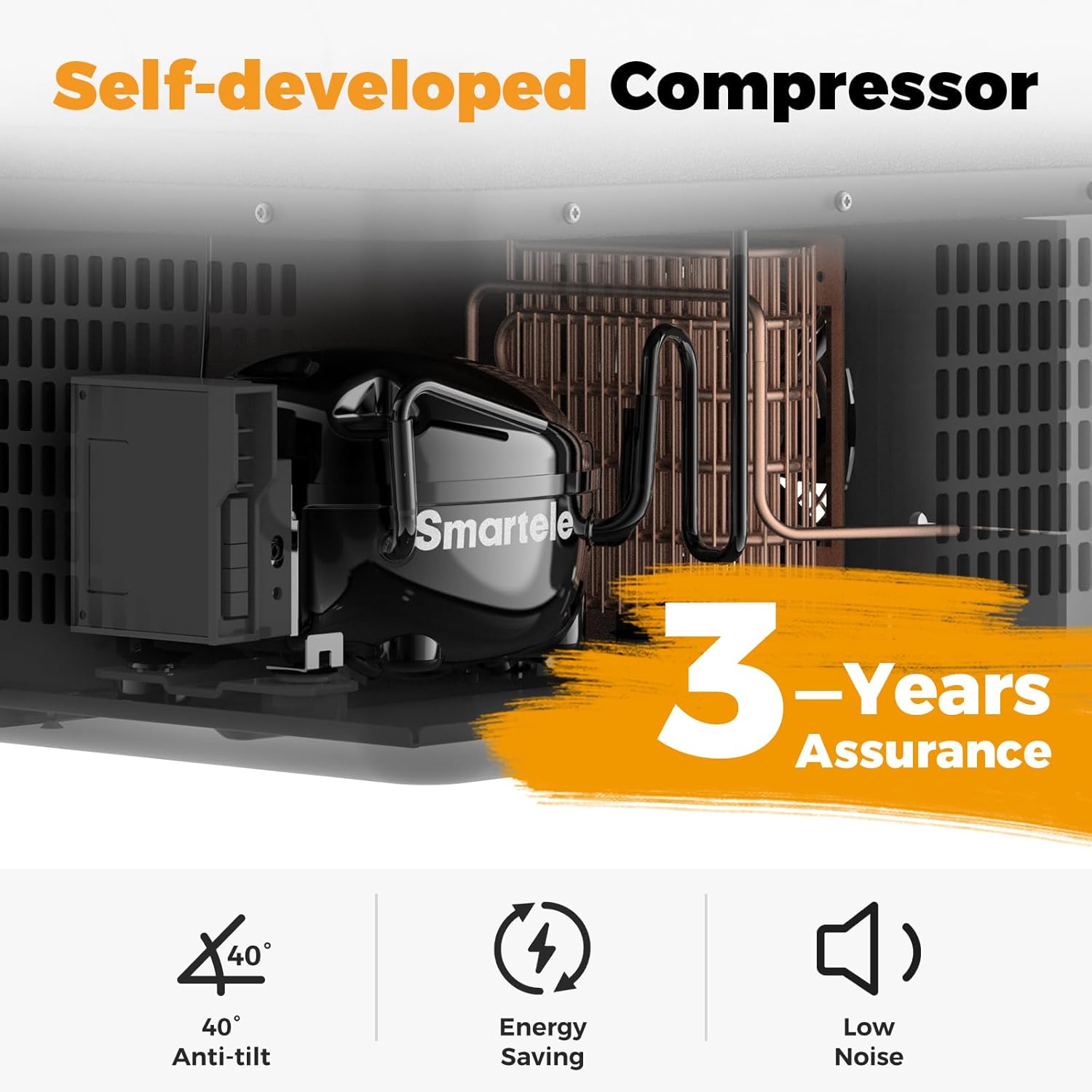 - Powerful Smartele Compressor: Powered by the high-performance Smartele Compressor, our portable freezer delivers fast cooling and reliable operation. This 12v fridge provides 3-year tech support on the compressor and 1 year for the other parts, ensuring peace of mind for all your adventures. Any product questions, please do not hesitate to Reach Out To us. Package includes: 1*12V/24V DC Power Cord, 1*AC Adapter, 1*user manual and 1*basket as limited gift for the first 100 orders