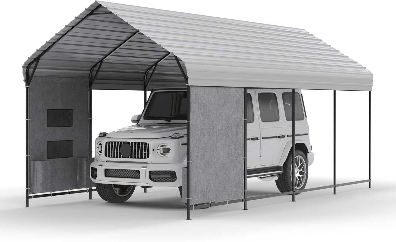 - Heavy-Duty Metal Carport: Unlike flimsy cloth-covered options, this car port features a robust steel frame and metal roof, 50% heavier than products on the market, built to withstand extreme weather—keeping your car safe in any condition