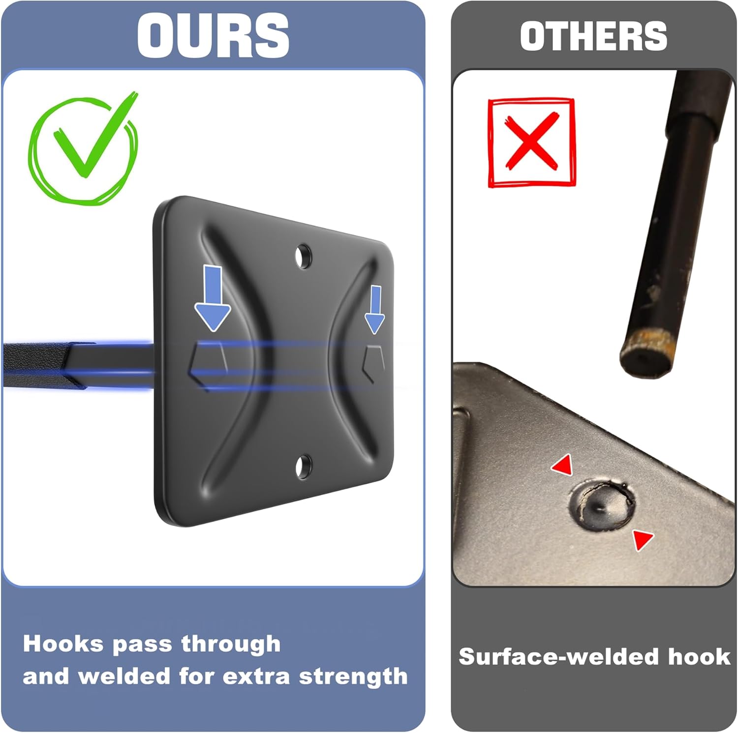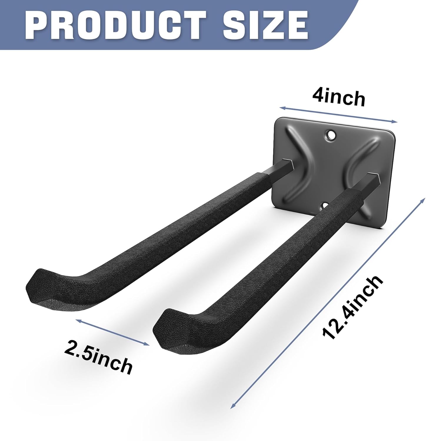 - Reinforced 12" Double Prong Hooks: Built with 12" prongs that pass through the plate and are fully welded for superior strength—much stronger than surface-welded hooks. Great for ladders, tools, hoses, and more