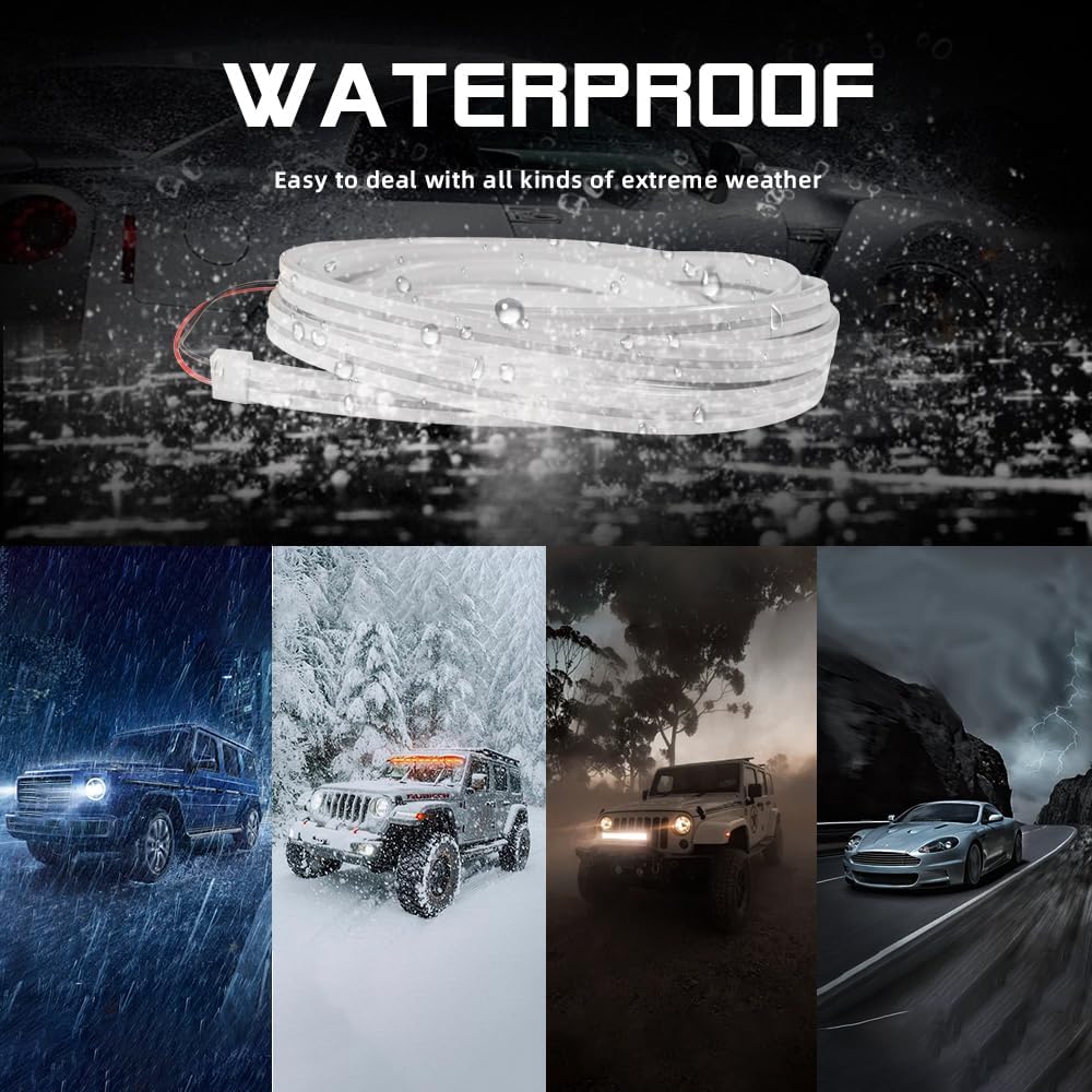 Car LED Strip Light For Trunk, 79Inch IP67 Silicone Waterproof Neon Light Strip Embedded, Flexible Cutting Universal Auto Interior Lights(White)