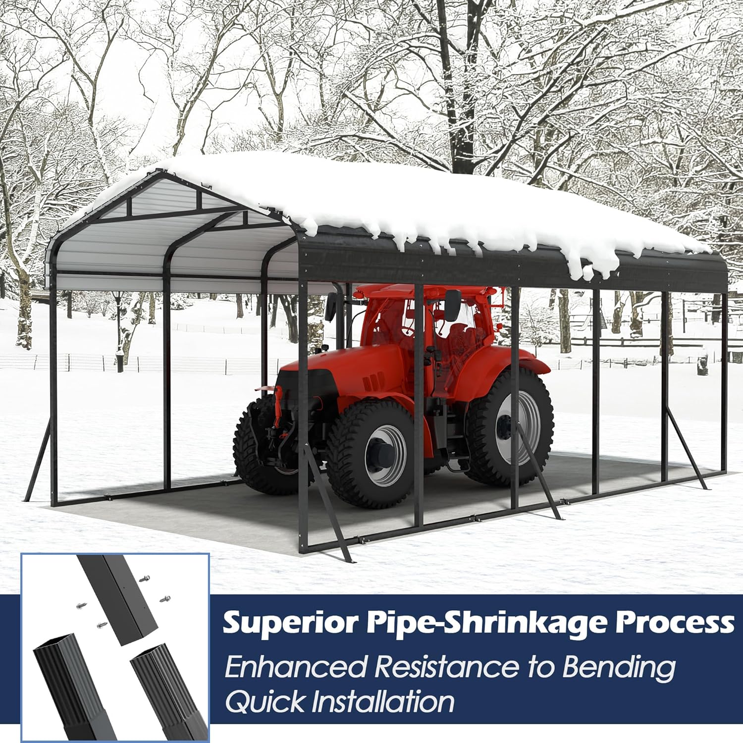 - 【All-Weather Protection】Constructed with heavy-duty alloy steel, the carport boasts galvanized frame and waterproof roof, shield your vehicle from harsh weather conditions such as scorching sun, hail and snowstorms. It is spacious enough to accommodate cars, trucks, tractors or boats, and serves as a carport canopy as well as a shelter for outdoor activities. Wind Rating: 100 MPH; Snow Load Capacity: 35 PSF