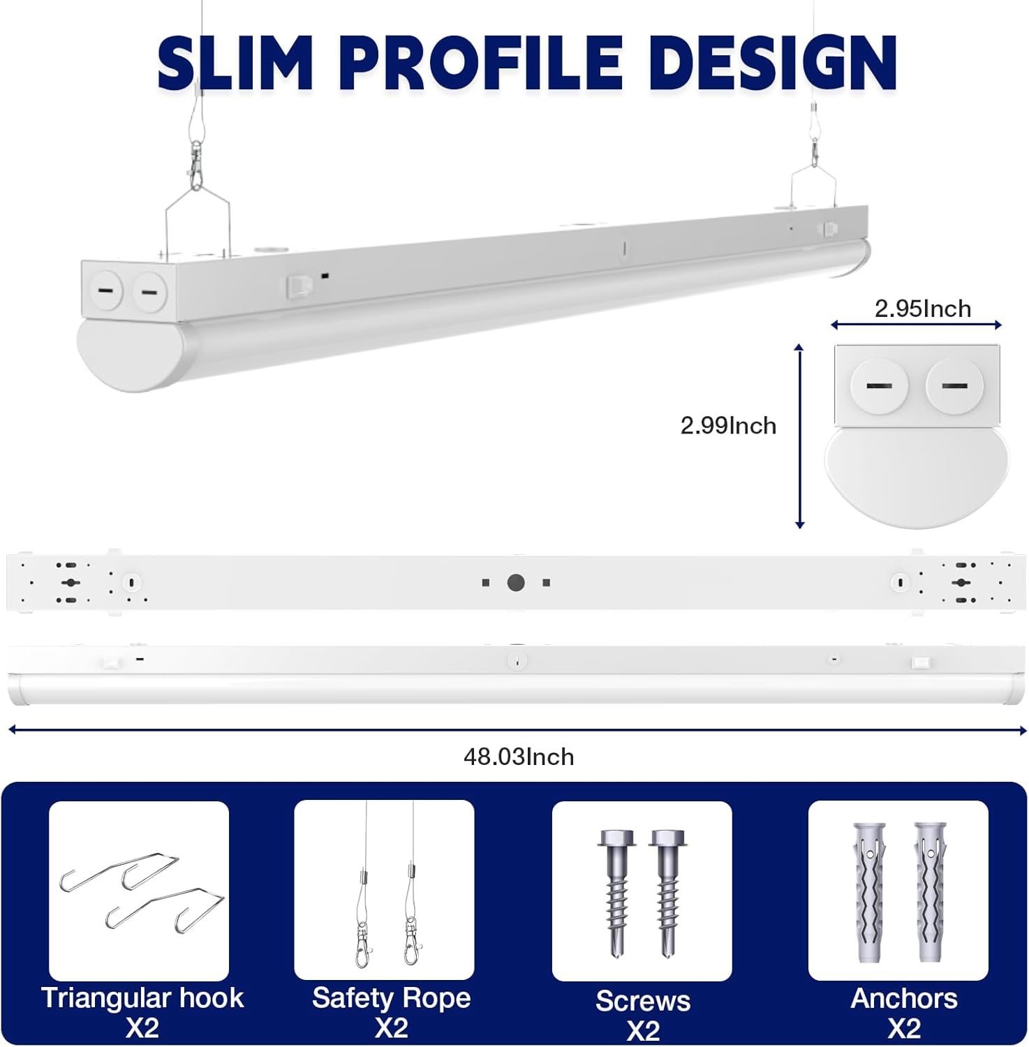 - 【Versatile Installation】Designed for garages, offices, and workshops. Surface-mount or suspend effortlessly using included hardware. Link multiple fixtures for continuous coverage in large spaces.
