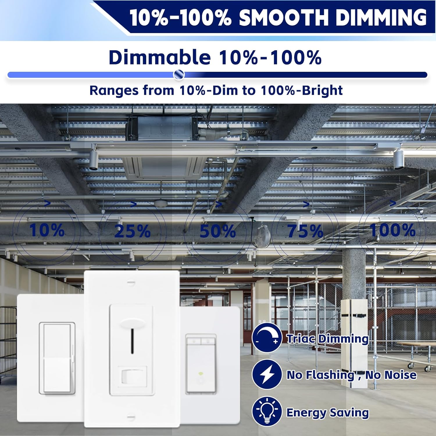 - 【Smooth Triac Dimming】Seamlessly adjust brightness from 10% to 100% with flicker-free, noise-free performance. The polycarbonate diffuser ensures even light distribution without glare or shadows.