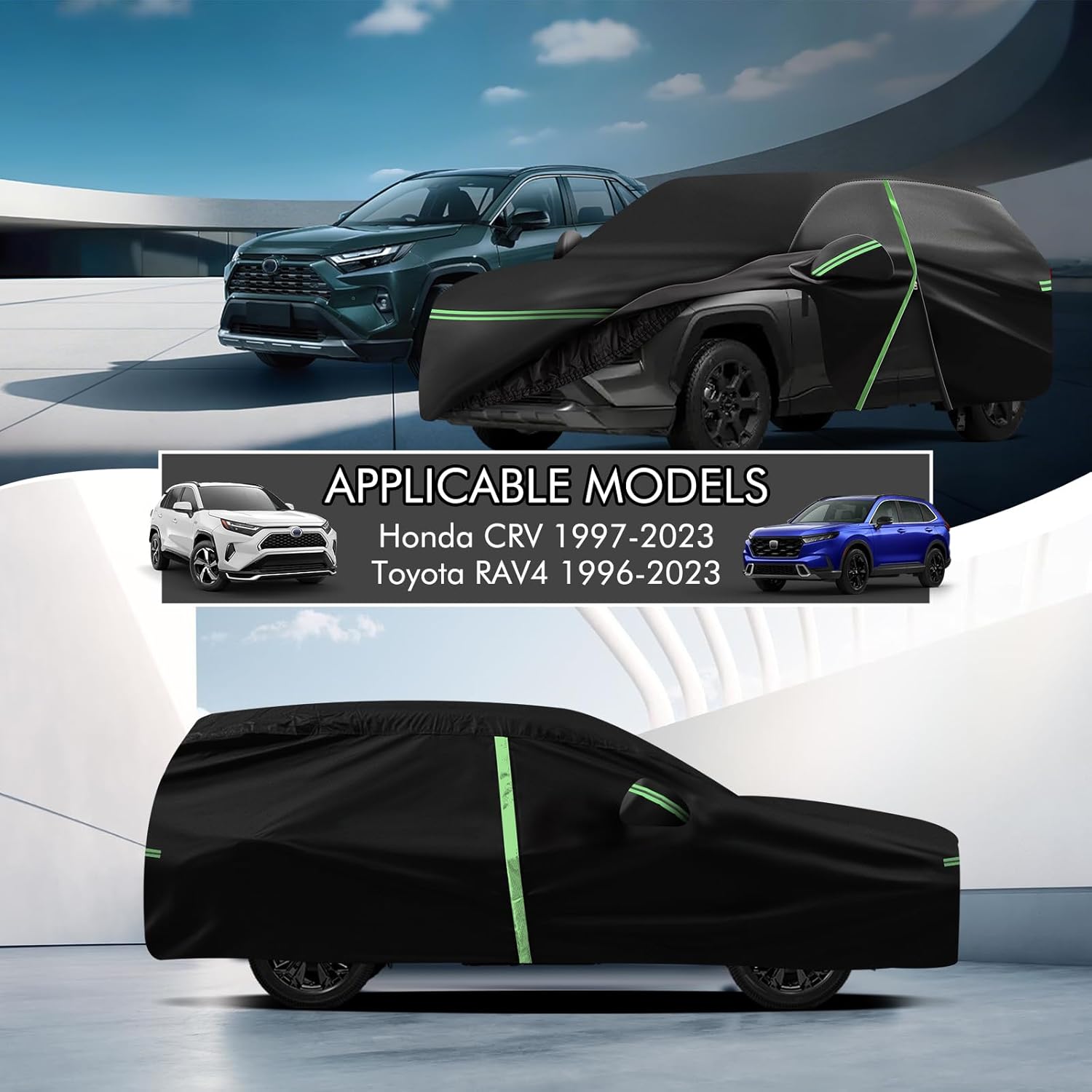 - đăCompatibilityăDTNESS car covers custom designed for perfect compatibility with Honda CRV 1997-2025, Toyota RAV4 1996-2025. (Other car models of the same size are also compatible.)