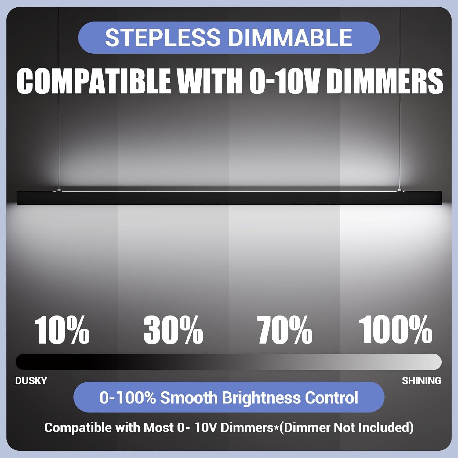 - LINKABLE AND 3000/4000/5000K 3CCT: The suspension linkable led lights can stand individually or in Seamless continuous runs with up to 5 lights, providing clean architectural lighting for your building. Compatible with 0-10V dimmer (not included) to control brightness from 0%-100% without flickering and buzzing.