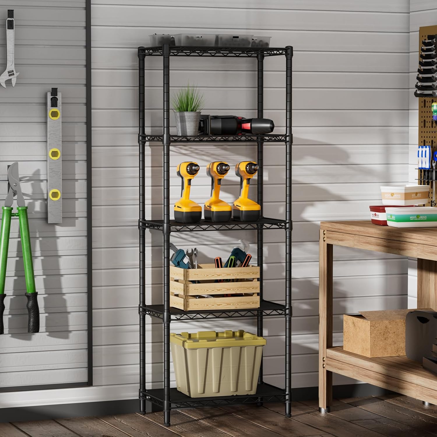 SINGAYE 5 Small Wire Shelves Kitchen Pantry Close Home Organizers and Storage Bathroom Shelf Laundry Room Organization Adjustable Book Metal Garage Shelving Unit