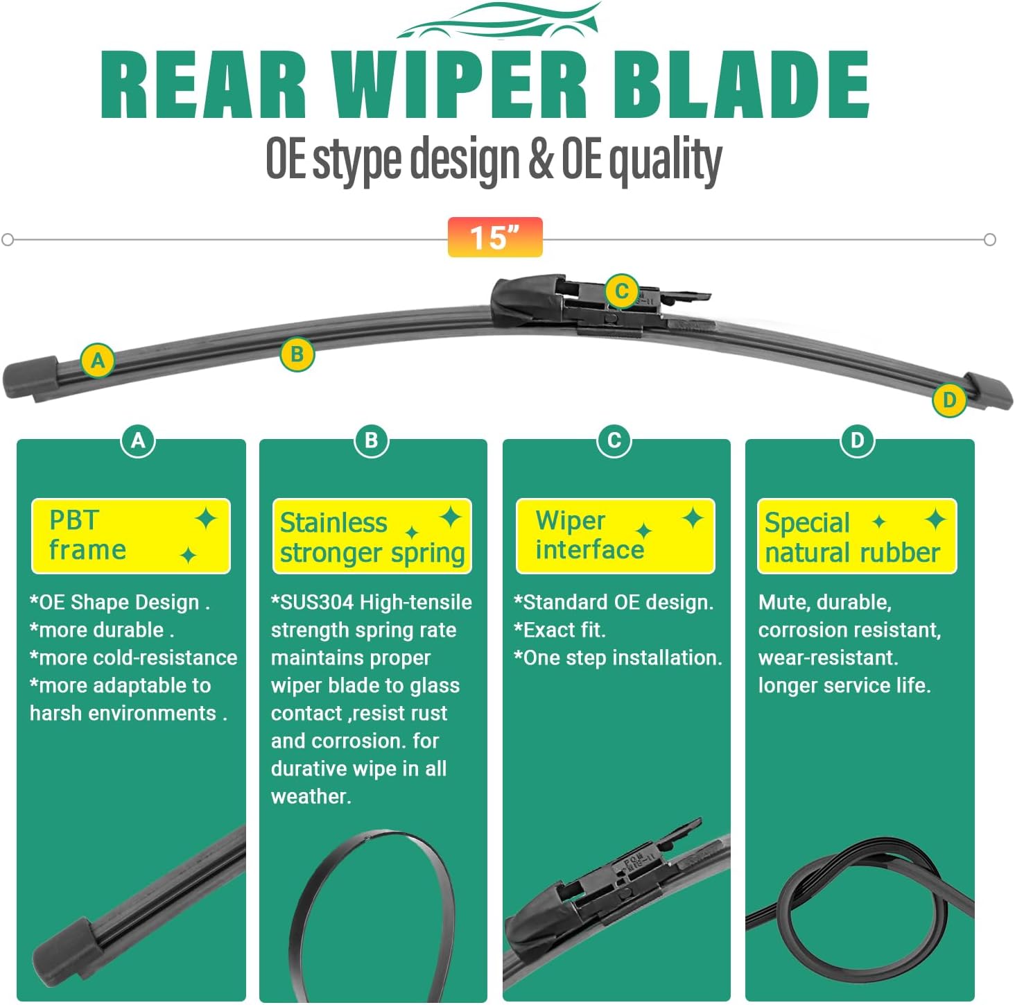 - [Super Clear Wipers]: High-quality rubber blade ensures efficient and streak-free wiping.