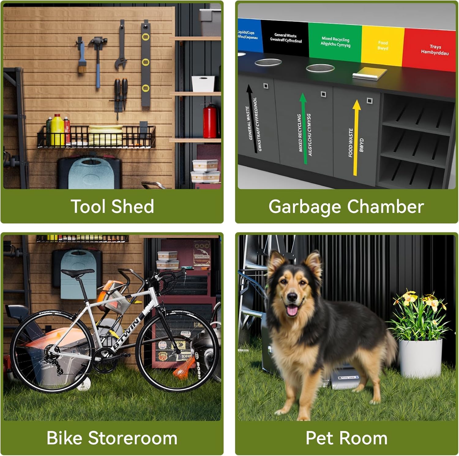 - Outdoor Shed:This storage shed is made of high-quality galvanized steel and covered with a powder-coated finish.Its durable construction ensures that it can withstand harsh weather conditions and ensure your items remain safe